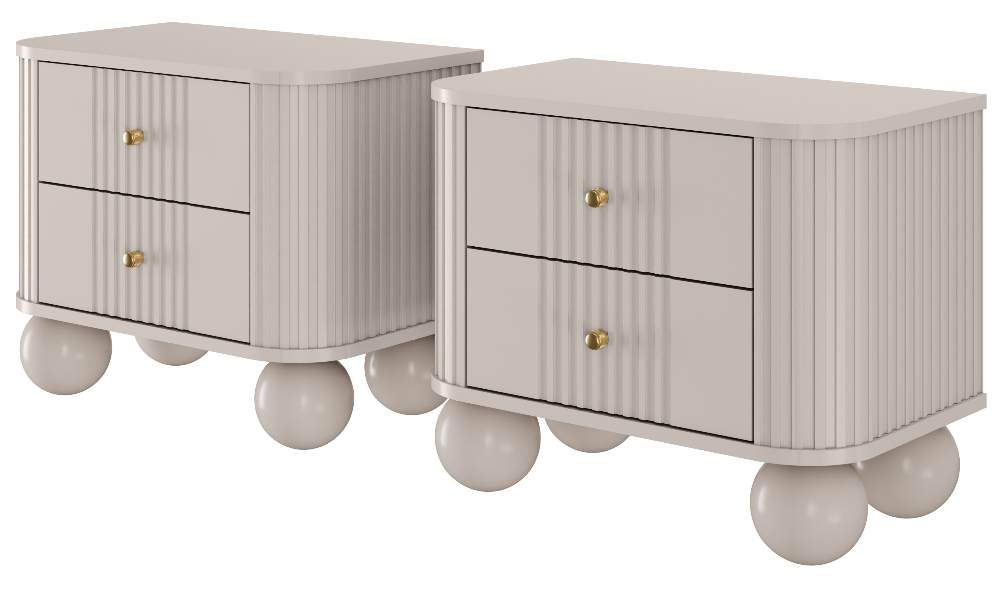 Unesite dašak elegancije i funkcionalnosti u svoju spavaću sobu s kompletom dviju noćnih ormarića Vesper 56 2SZ. Ovi ormarići u boji kašmira pažljivo su dizajnirani da se uklapaju u svaku suvremenu spavaću sobu, spajajući estetiku s praktičnošću. Svojim bezvremenskim dizajnom i vrhunskim materijalima, ovaj komplet idealan je izbor za one koji cijene i stil i kvalitetu.