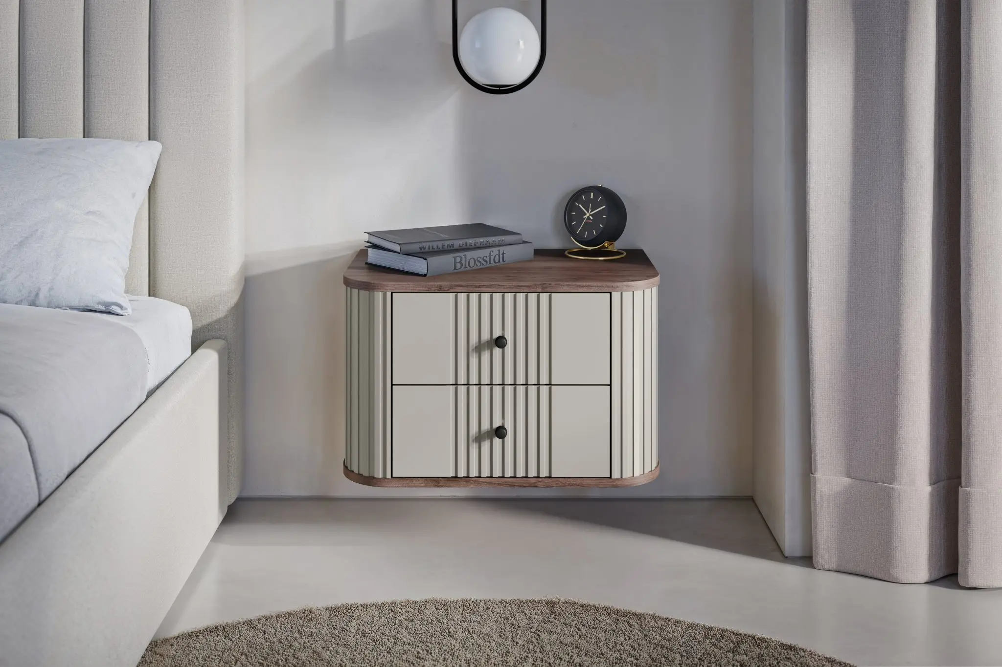 Otkrijte savršenu harmoniju elegancije i praktičnosti s našim zidnim kompletom dvaju noćnih ormarića Vesper. Ovaj izvanredan komplet, proizveden u priznatoj tvornici Bogart u Bosni, spaja suvremenu estetiku s vrhunskom funkcionalnošću, što ga čini nezamjenjivim u svakom kućnom ambijentu.