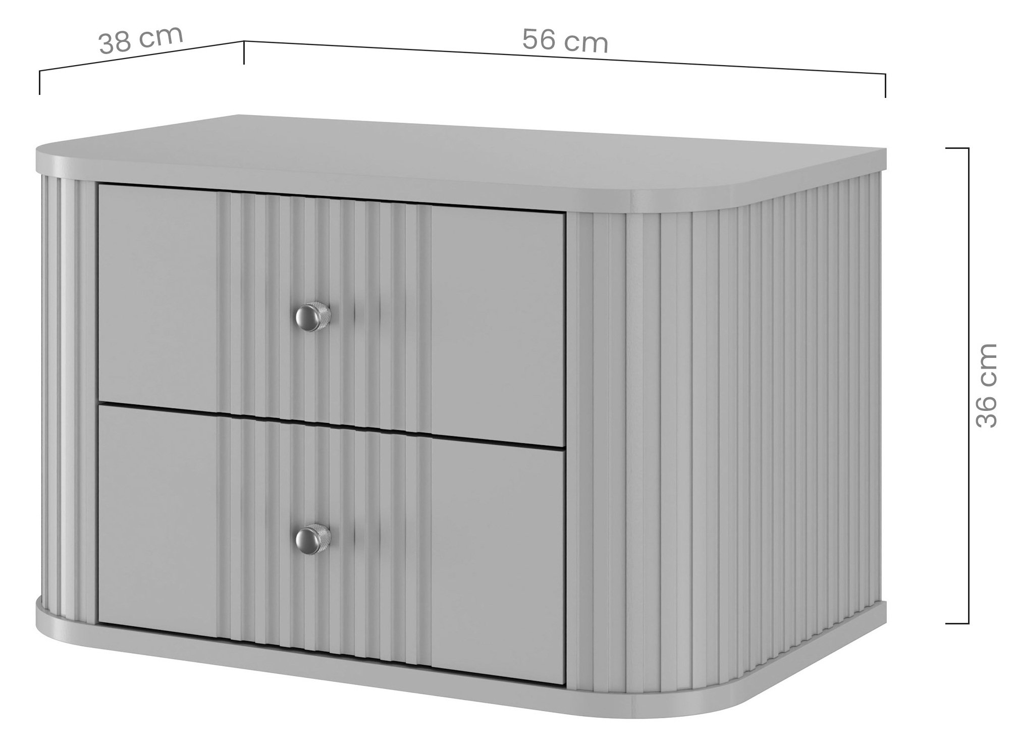 Vesper 56 2SZ zidni komplet savršen je izbor za one koji cijene kombinaciju estetike i funkcionalnosti. Noćni ormarići omogućuju prilagodljivu montažu na zid, što znači da možete optimalno iskoristiti prostor u svojoj spavaćoj sobi. Osim toga, zbog svoje visine i širine, stvaraju vizualni dojam većeg prostora, što je posebno važno u manjim sobama.