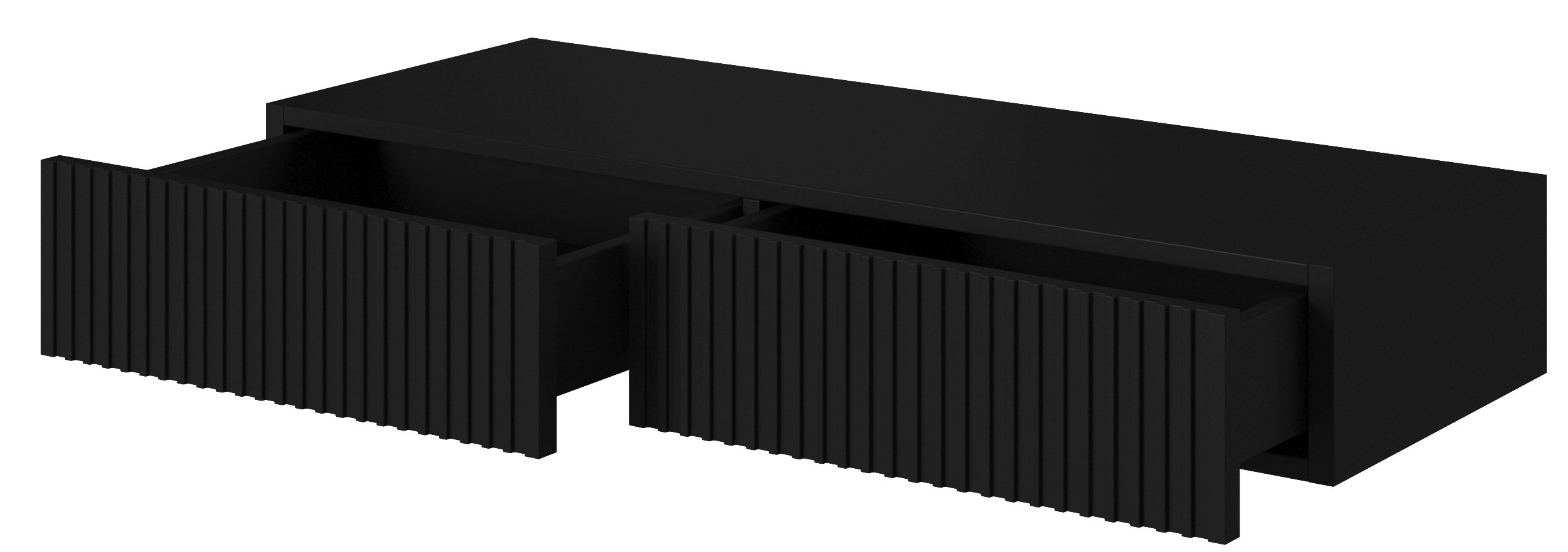 Predstavljamo vam zidni toaletni stolić Nicole 100 2SZ u elegantnoj crnoj boji, koji će vašoj spavaćoj sobi ili kupaonici dodati dašak suvremenog dizajna. Ovaj izniman stolić nije samo funkcionalan, već i estetski privlačan, zahvaljujući izraženom rebrastom uzorku na frontama, koji oduševljava svojom vertikalnom strukturom.