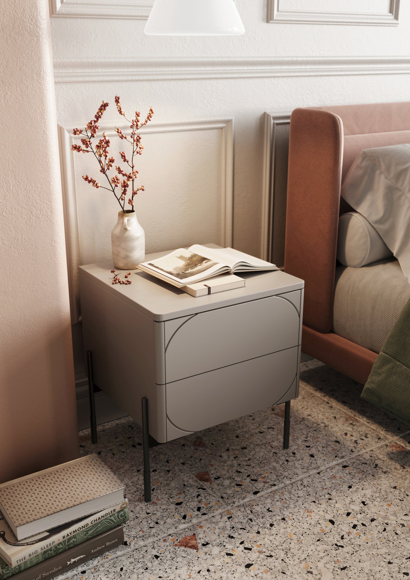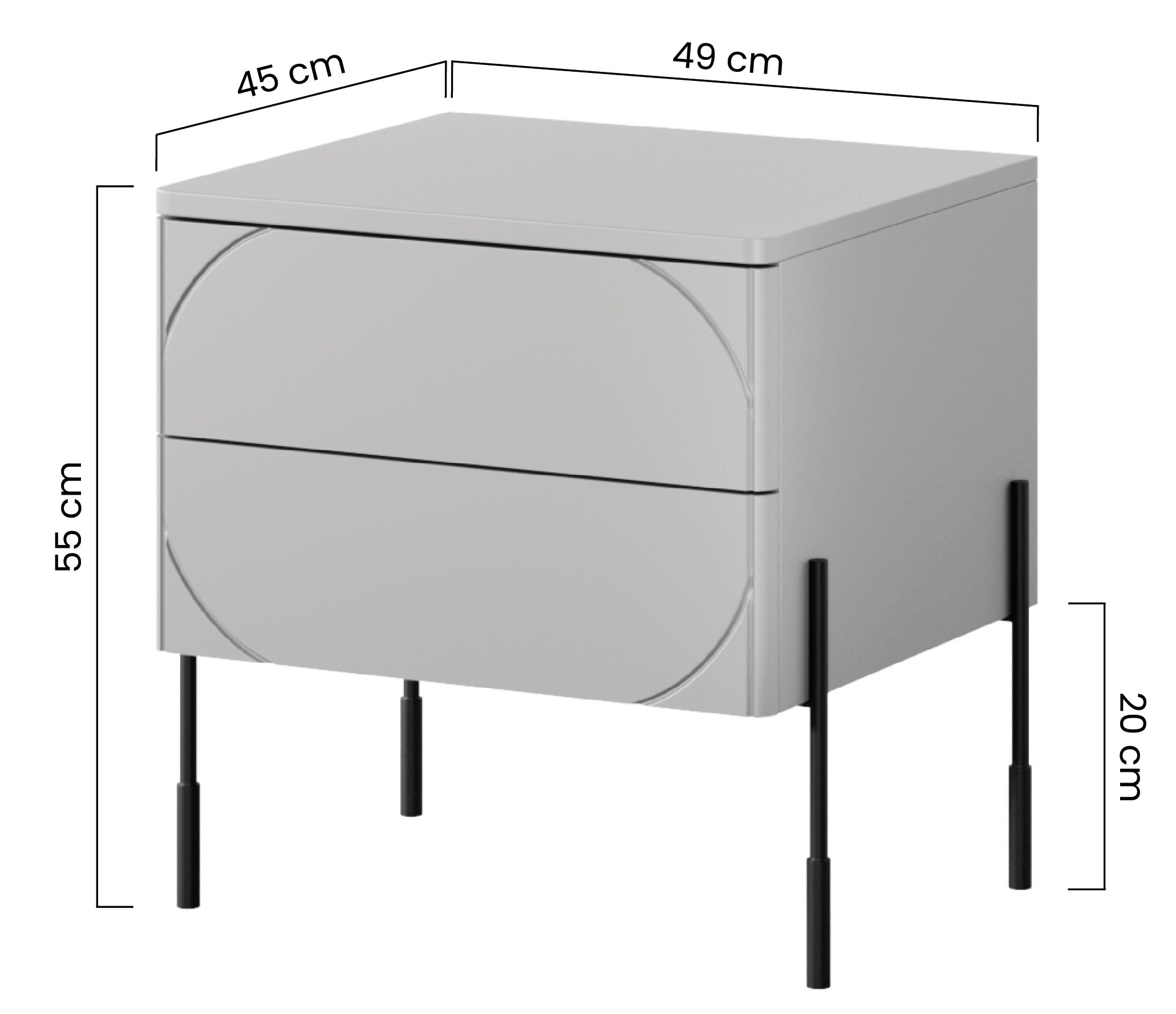 Noćni ormarić Sonatia 45 2SZ savršen je dodatak za sve one koji cijene profinjen dizajn i praktičnost. Osigurava idealnu kombinaciju suvremenog stila i funkcionalnosti, koja će vašoj spavaćoj sobi dodati dašak elegancije i profinjenosti. Ovaj prekrasan noćni ormarić dizajniran je tako da zadovolji sve vaše potrebe za pohranom, a istovremeno poboljšava estetski izgled prostora.