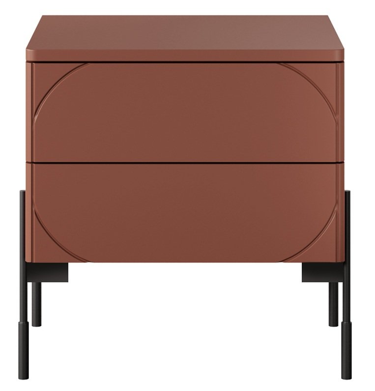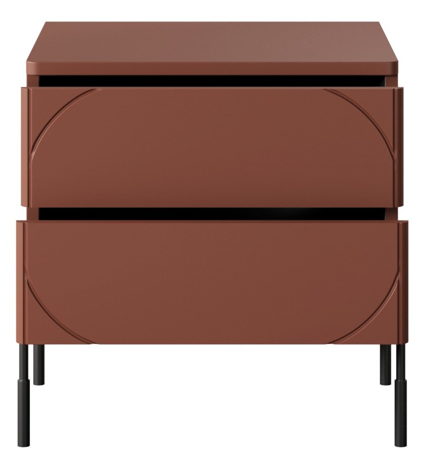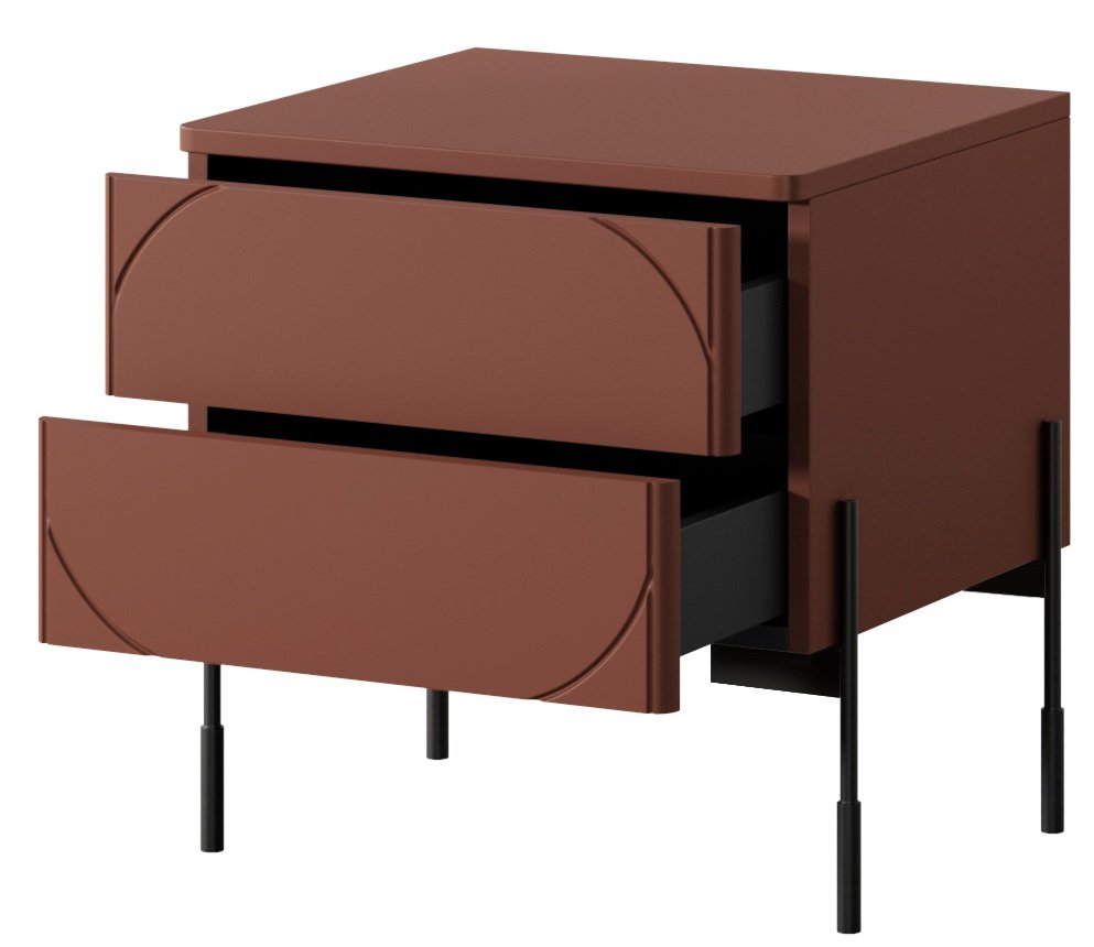 Noćni ormarić Sonatia 45 2SZ, odjeven u zavodljivu burgundsku crvenu, savršen je dodatak vašoj spavaćoj sobi, koji spaja moderan dizajn i iznimnu funkcionalnost. Sa svojim elegantnim izgledom i kvalitetnom izradom, ovaj noćni ormarić nije samo praktičan, već i vizualno privlačan. Njegove dimenzije 49x45x55 cm omogućuju da se bez problema uklopi i u manje prostore, a istovremeno nudi dovoljno mjesta za pohranu vaših najnužnijih potrepština.