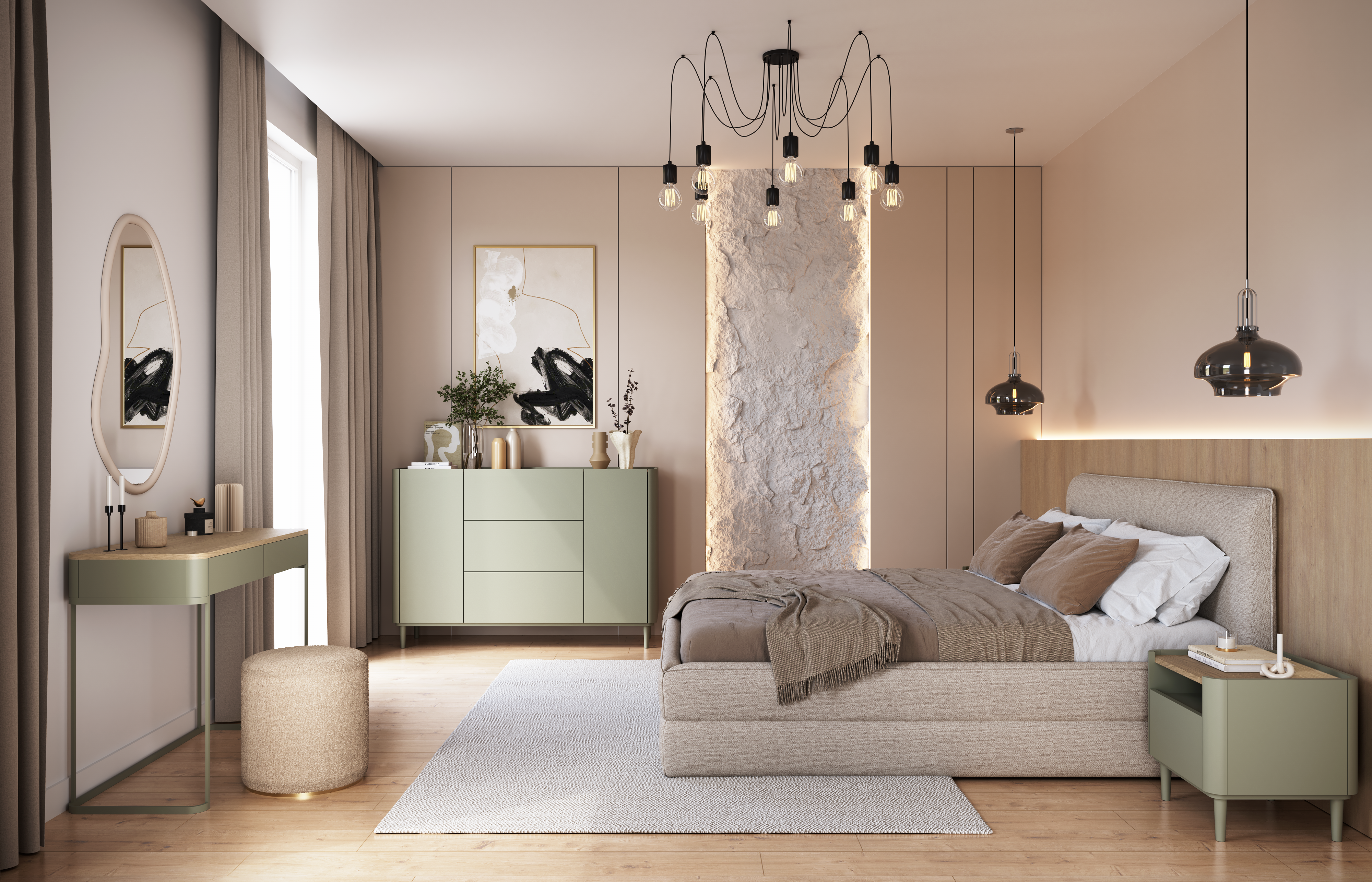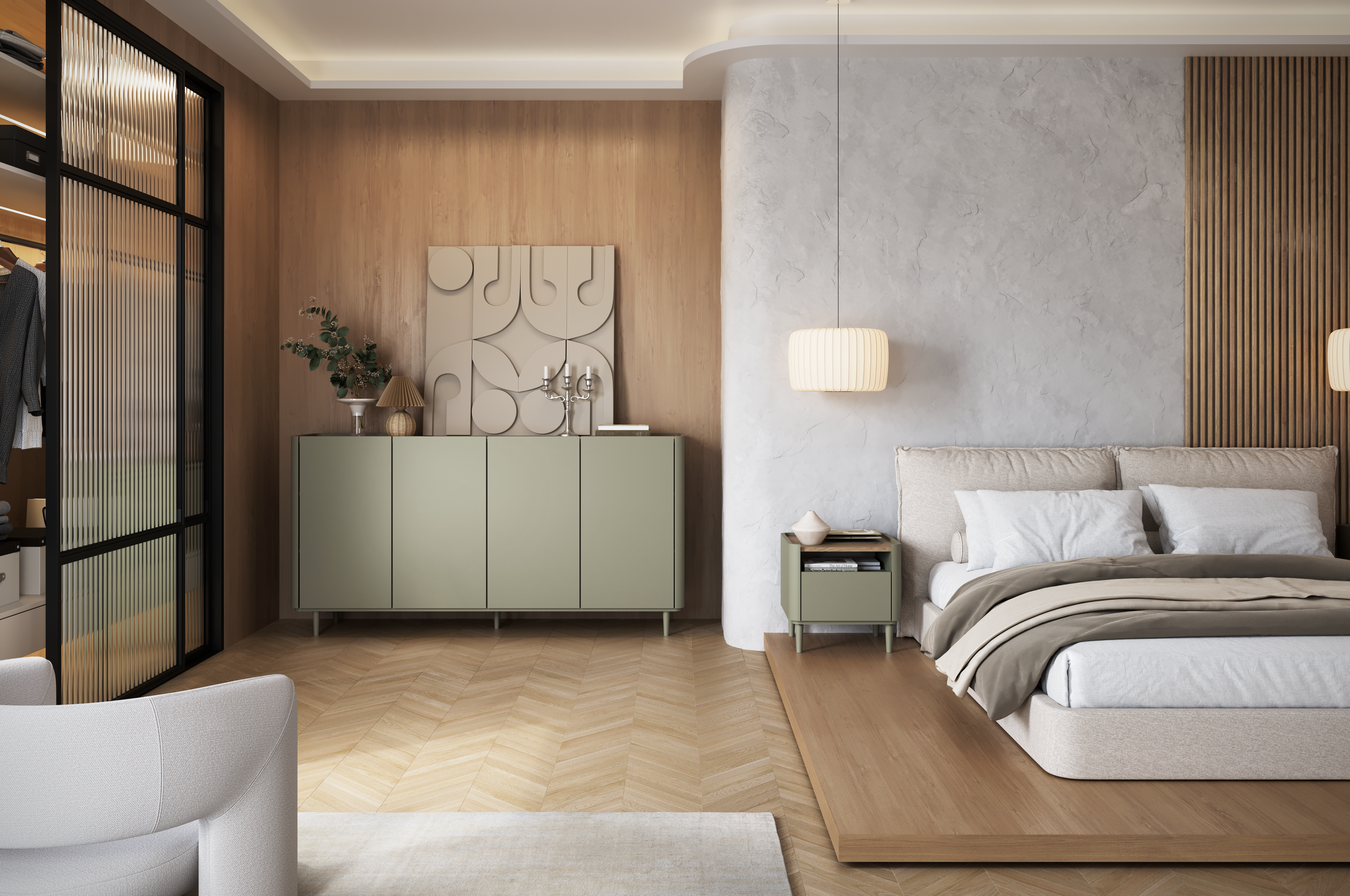 Elivo se lijepo uklapa i u suvremene i u klasične interijere. Kombinacija boja eukaliptusa i baltic dune hrasta stvara mirnu, ali toplu atmosferu, koja se izvrsno slaže s neutralnim tekstilnim dodacima ili metalnim detaljima. Zbog univerzalnog dizajna kolekcija se može koristiti u različitim prostorima – od dnevnog boravka, gdje dolazi do izražaja njezina elegantna jednostavnost, do spavaće sobe, gdje naglašava osjećaj mira i udobnosti.