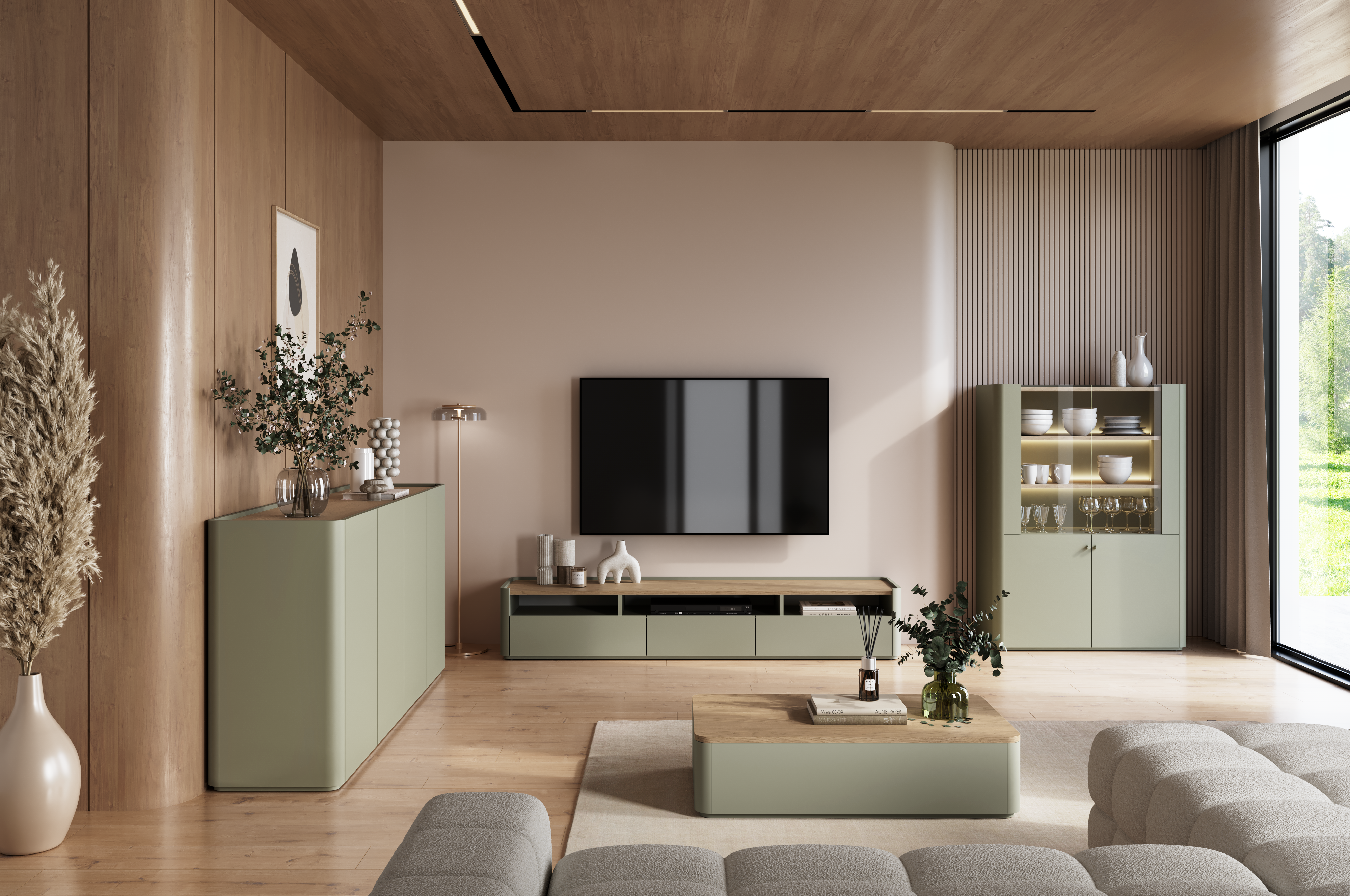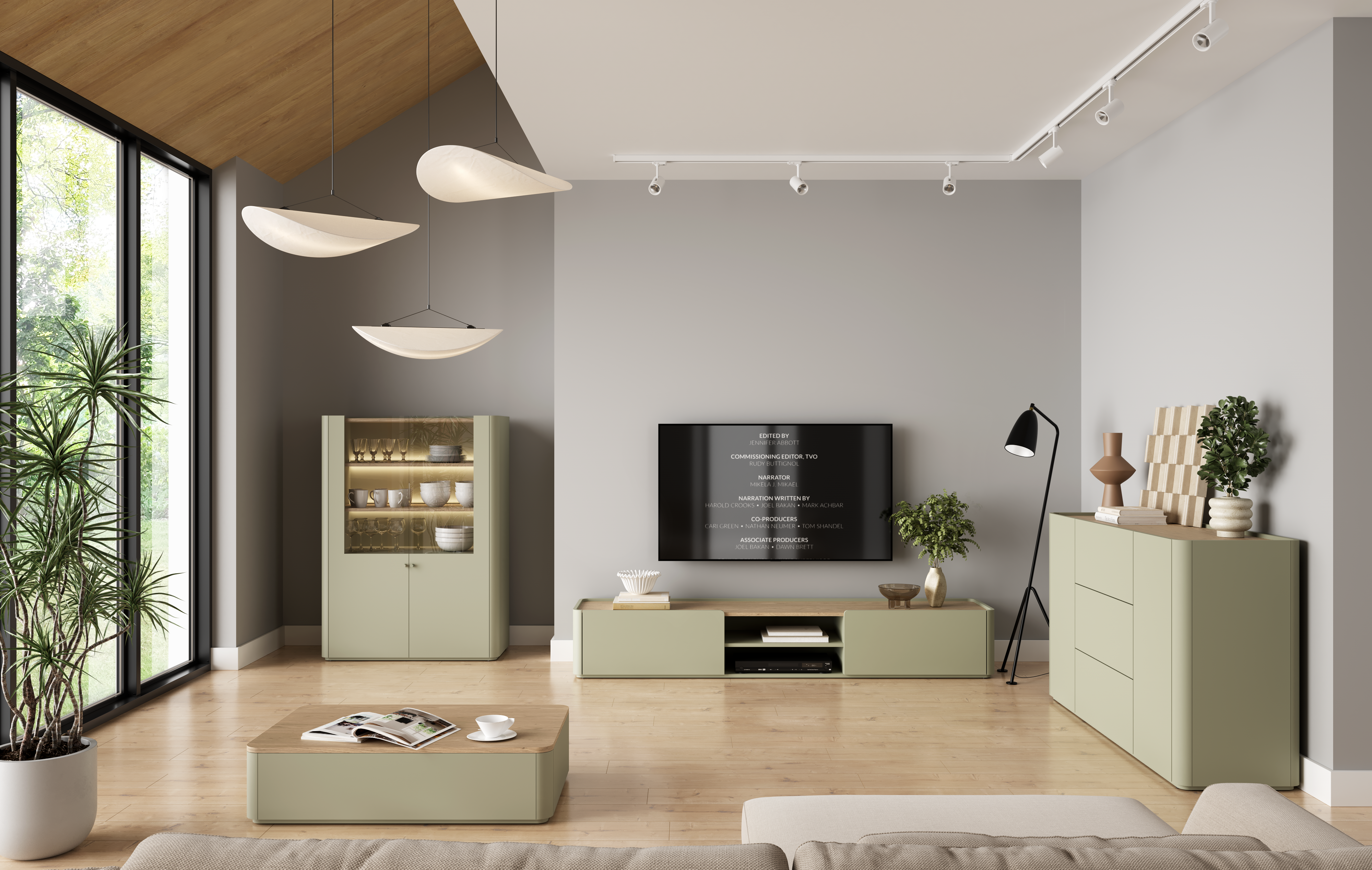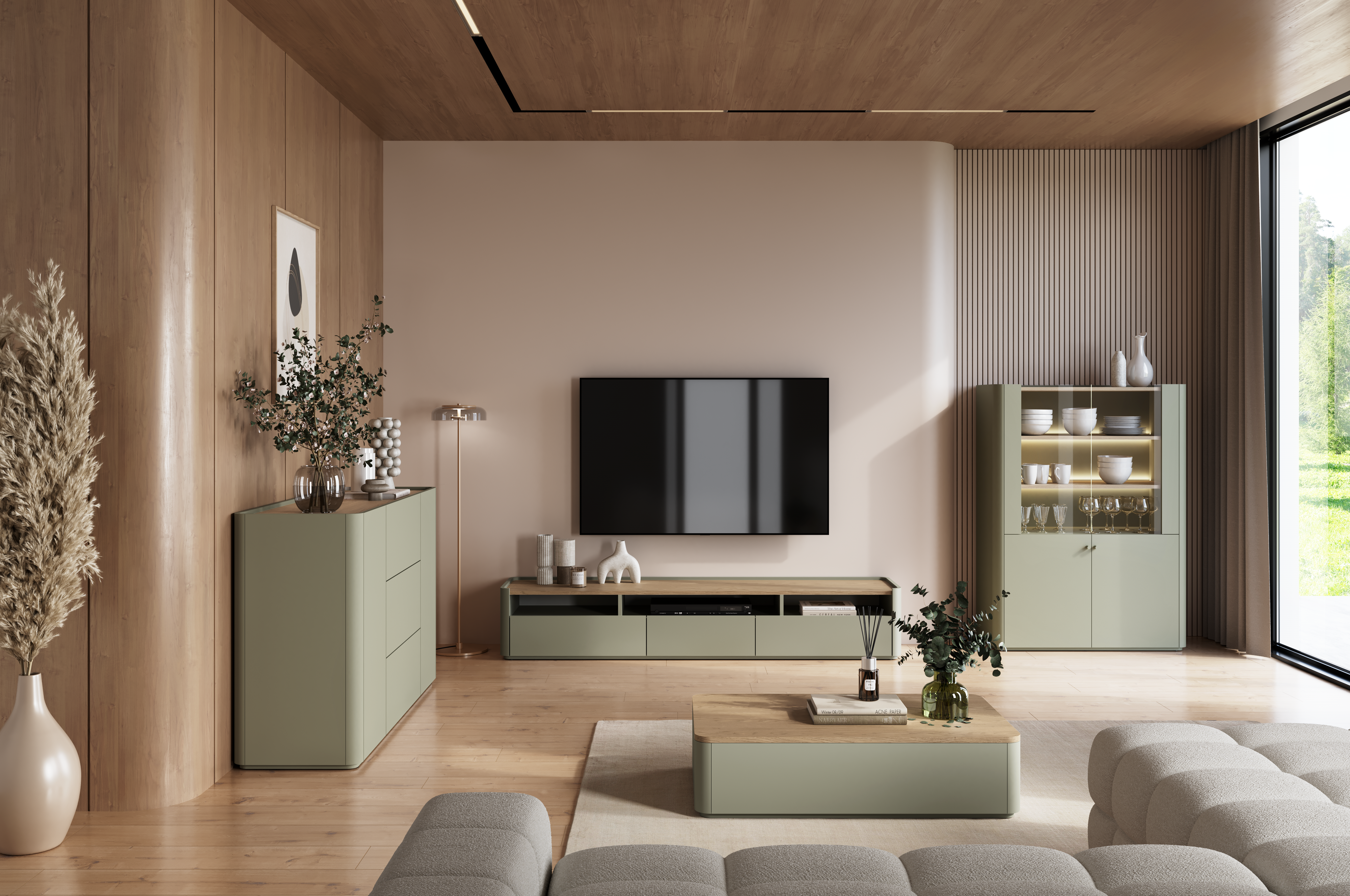 Model Elivo ističe se svojom svestranošću. Dizajniran je tako da se savršeno uklapa i u dnevni boravak i u spavaću sobu. U dnevnom prostoru dijelovi kolekcije mogu služiti kao središnji element za pohranu knjiga, dekoracija ili multimedijskih uređaja, dok se u spavaćoj sobi mogu koristiti kao garderobni ili pomoćni elementi. Kombinacija eukaliptusa i svijetlog hrasta vizualno povećava prostor i daje mu osjećaj svježine.