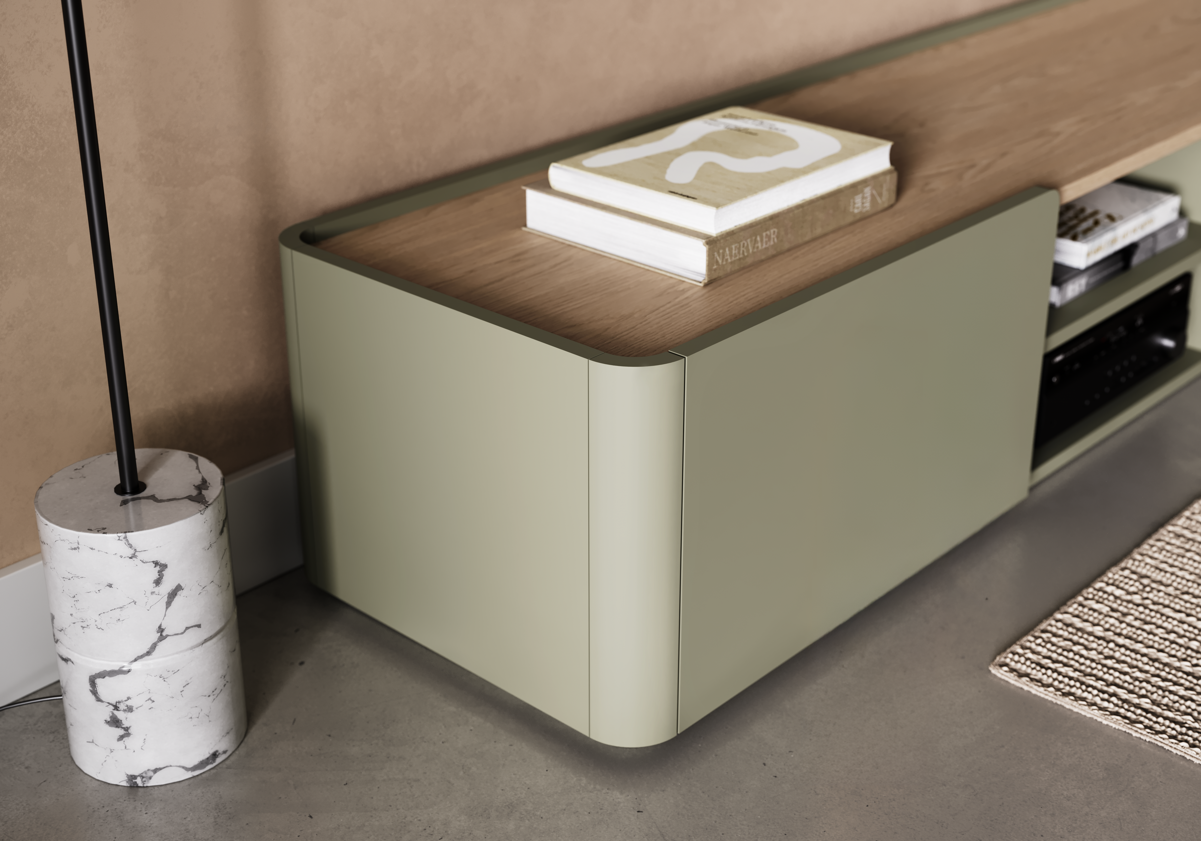 Kolekcija Elivo dizajnirana je s mišlju na praktičnost. Svi su ladice opremljene mekim zatvaranjem, što sprječava nagle udarce i produžuje vijek trajanja okova. Takav sustav omogućuje tiho i glatko djelovanje, što se posebno cijeni u spavaćim sobama, gdje želimo zadržati mirno i opušteno okruženje. Rubovi elemenata zaštićeni su ABS trakom, koja povećava otpornost na udarce i vlagu te istodobno zadržava estetski izgled kroz vrijeme.
