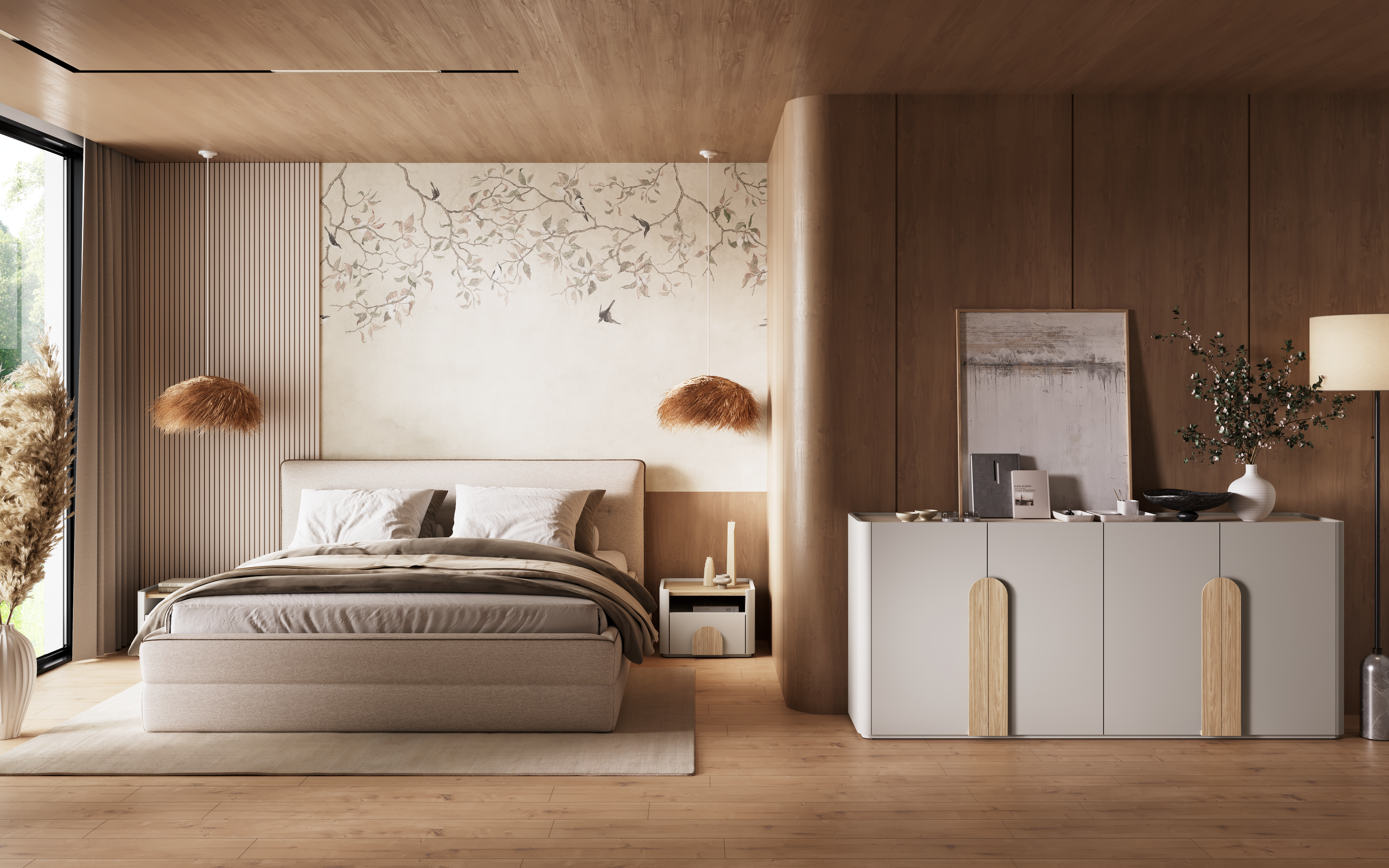Kolekcija Amilio osmišljena je tako da omogućuje harmonično povezivanje različitih prostora u domu. U dnevnom boravku se nijansa kašmira lijepo slaže s mekim osvjetljenjem i tekstilnim dodacima, dok u spavaćoj sobi stvara osjećaj mira i topline. Površina u izgledu nauljenog hrasta dodaje element autentičnosti i prirodnosti.