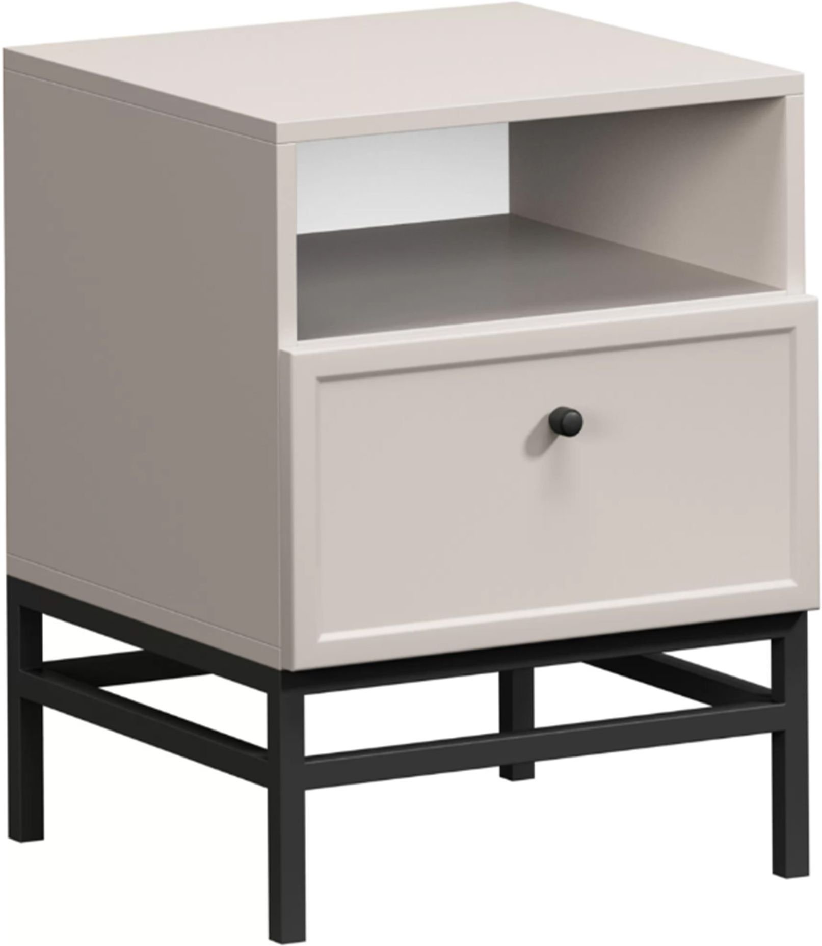 Kašmir boja tijela i fronte daje noćnom ormariću Lorini mekan, topao izgled. Površina je glatka i jednostavna za čišćenje, bez nepotrebnih detalja, što naglašava minimalističku estetiku. Zbog neutralnog tona ormarić se lijepo uklapa s drugim komadima namještaja u svjetlijim ili tamnijim nijansama drva, kao i s modernim metalnim i tekstilnim dodacima. Taj jednostavan, a istodobno sofisticiran izgled čini ga prikladnim i za suvremene i za klasične spavaće sobe.