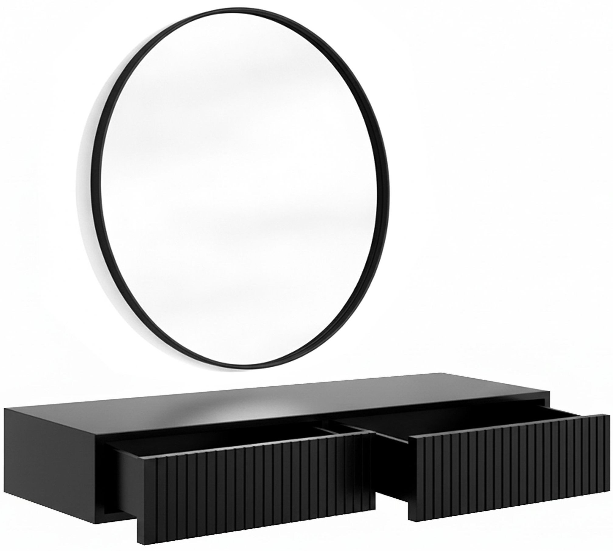Ako tražite zidni toaletni stolić koji spaja eleganciju, funkcionalnost i kvalitetnu izradu, Nicole 80 cm – Bogart je izvrstan izbor. Njezin mat crni izgled, vertikalno rebraste fronte i promišljen dizajn vašem će prostoru dodati sofisticiran karakter, a svakodnevno uređivanje učiniti ugodnijim i organiziranijim.
