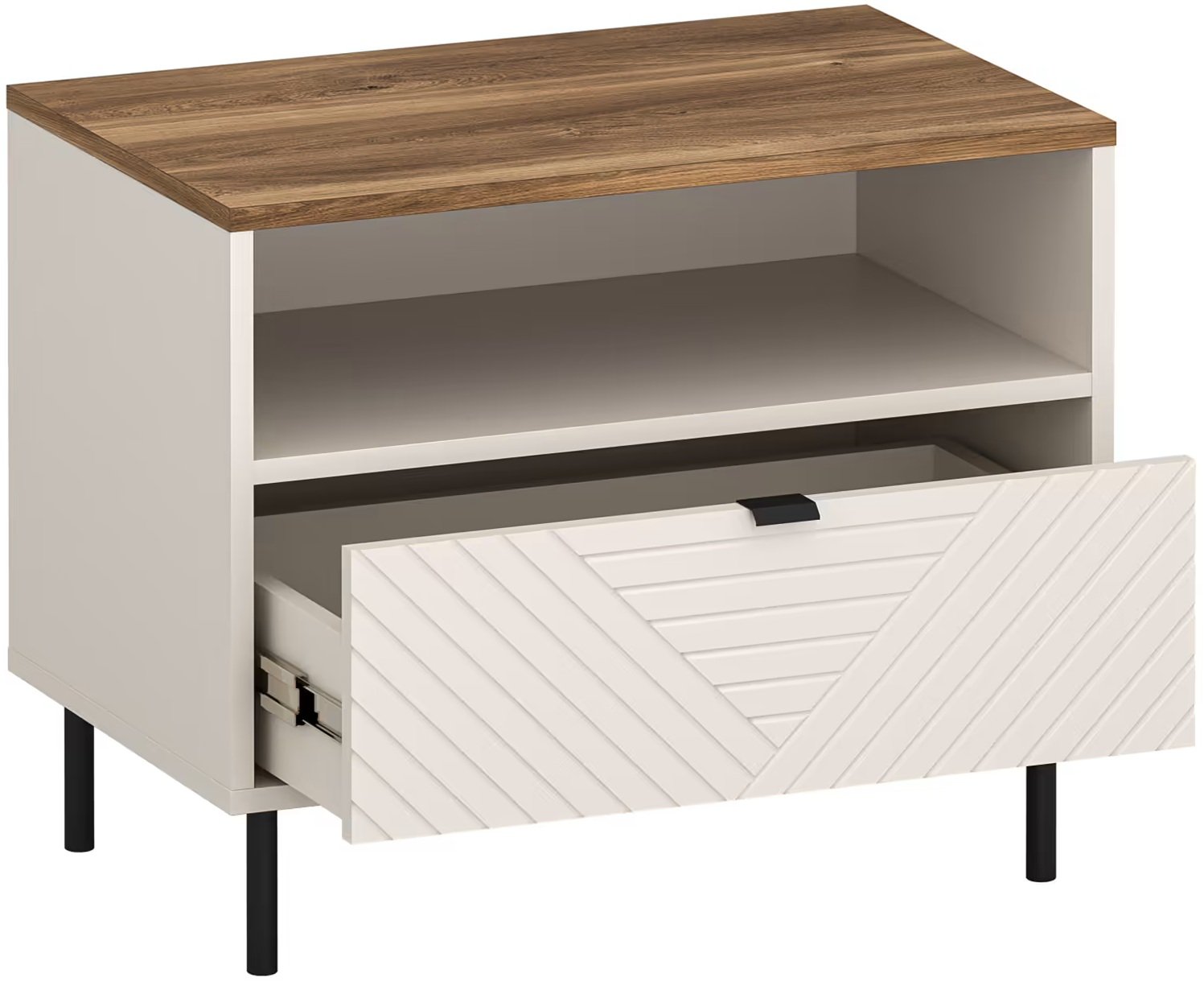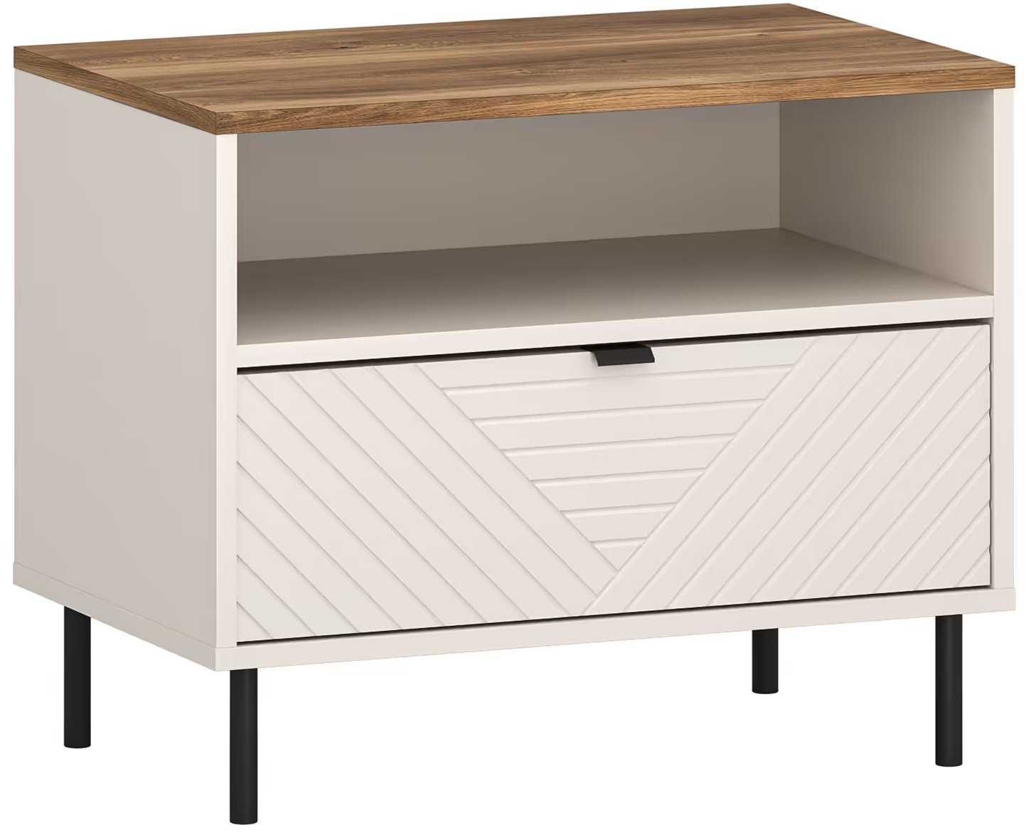 Kada govorimo o unutarnjem namještaju, detalji su ti koji stvaraju pravu harmoniju i dodaju poseban pečat vašem domu. Predstavljamo vam noćni ormarić Evo, koji nije samo praktičan komad namještaja, već i estetski dodatak koji će obogatiti vašu spavaću sobu. Izrađen od izdržljivog iverala i obložen elegantnom kombinacijom kašmira i castello hrasta, ovaj noćni ormarić savršen je izbor za sve koji cijene kvalitetu i stil.
