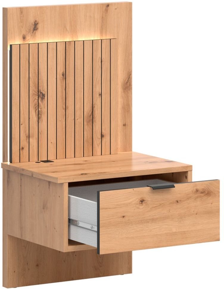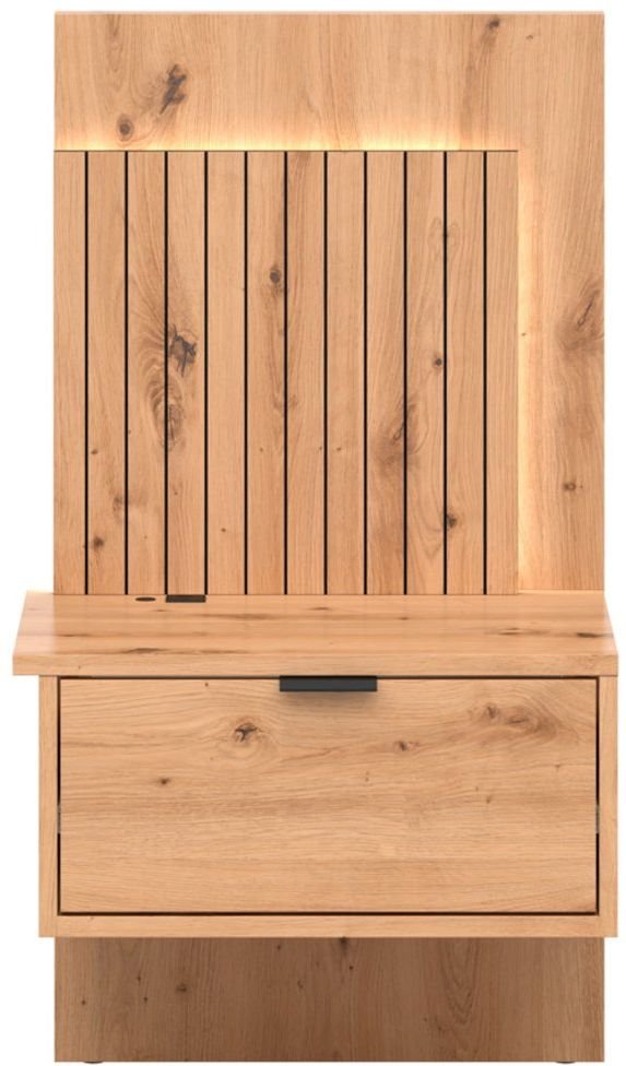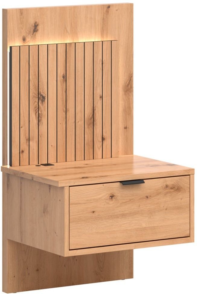 Noćni ormarić izrađen je od iverice debljine 16 mm i HDF ploče 3 mm, što osigurava čvrstoću, stabilnost i dug vijek trajanja. Površina u boji artisan hrasta s autentičnim uzorcima drveta i vidljivim čvorovima stvara osjećaj prirodnosti, koji u spavaćoj sobi stvara ugodnu i mirnu atmosferu. Jednostavne linije i suptilni detalji omogućuju lako kombiniranje s ostalim komadima namještaja, dok prostoru daju dašak bezvremenske elegancije.