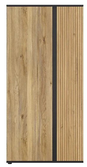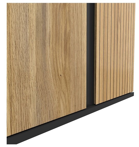 Povezanost dekora hrasta taegola i hrasta mauvella stvara prirodnu toplinu koju nadopunjuje crna mat površina kućišta. Ta kombinacija djeluje elegantno i moderno u isto vrijeme, a omogućuje jednostavno uklapanje u različite stilove unutarnjeg uređenja – od minimalističkog do skandinavskog ili čak industrijskog. Ormar se lijepo slaže s drvenim podnim oblogama, neutralnim zidovima i metalnim dodacima.