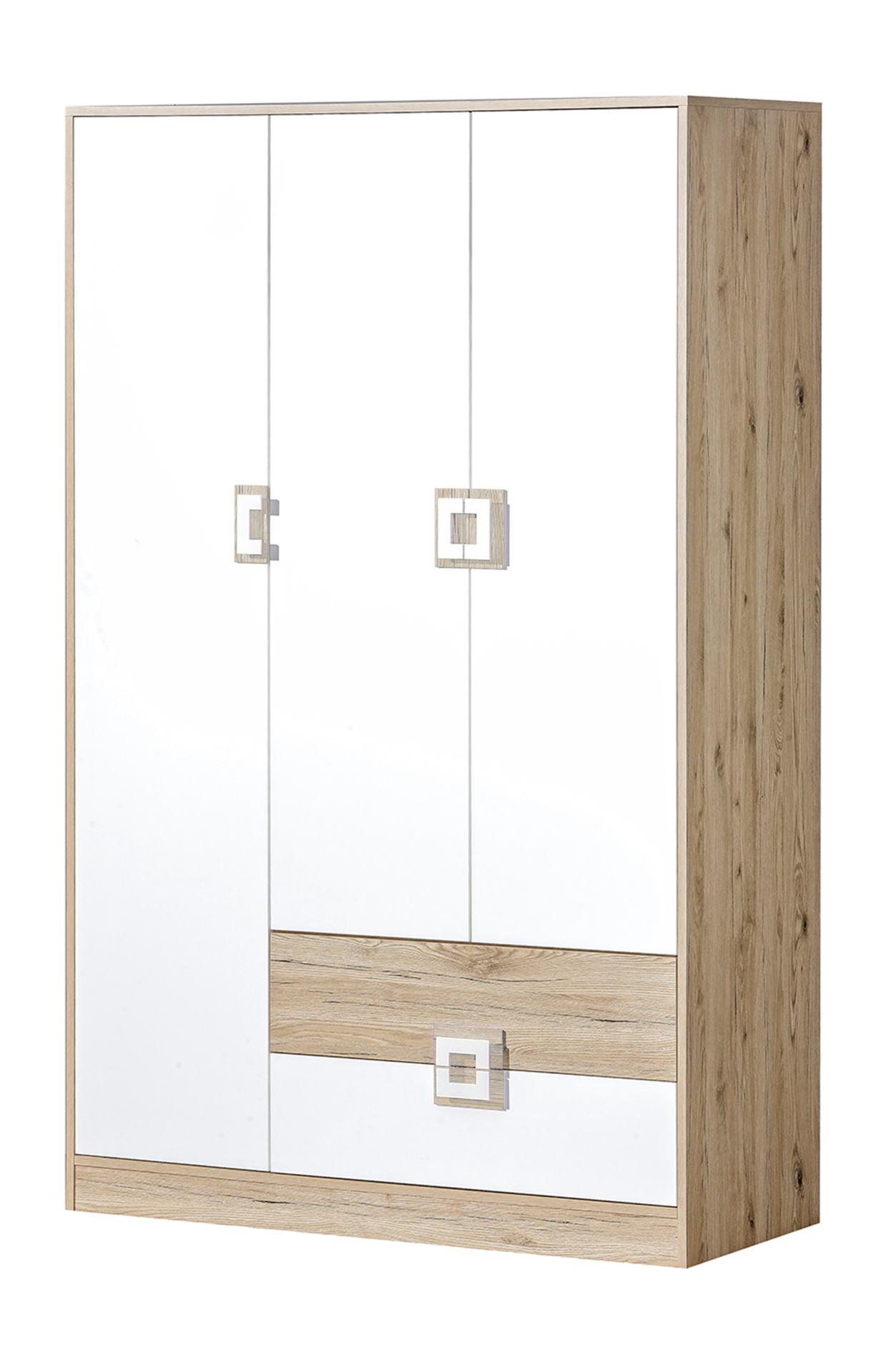 Ormar Nico 3 Domel odličan je izbor za sve koji žele praktično i estetsko rješenje za pohranu odjeće. Njegov prirodni izgled hrasta, dopunjen bijelim površinama, stvara ugodnu atmosferu u prostoru. Zahvaljujući kvalitetnom materijalu, promišljenim mjerama i preciznoj izradi, ovaj ormar je trajno i funkcionalno ulaganje u uređen dom.