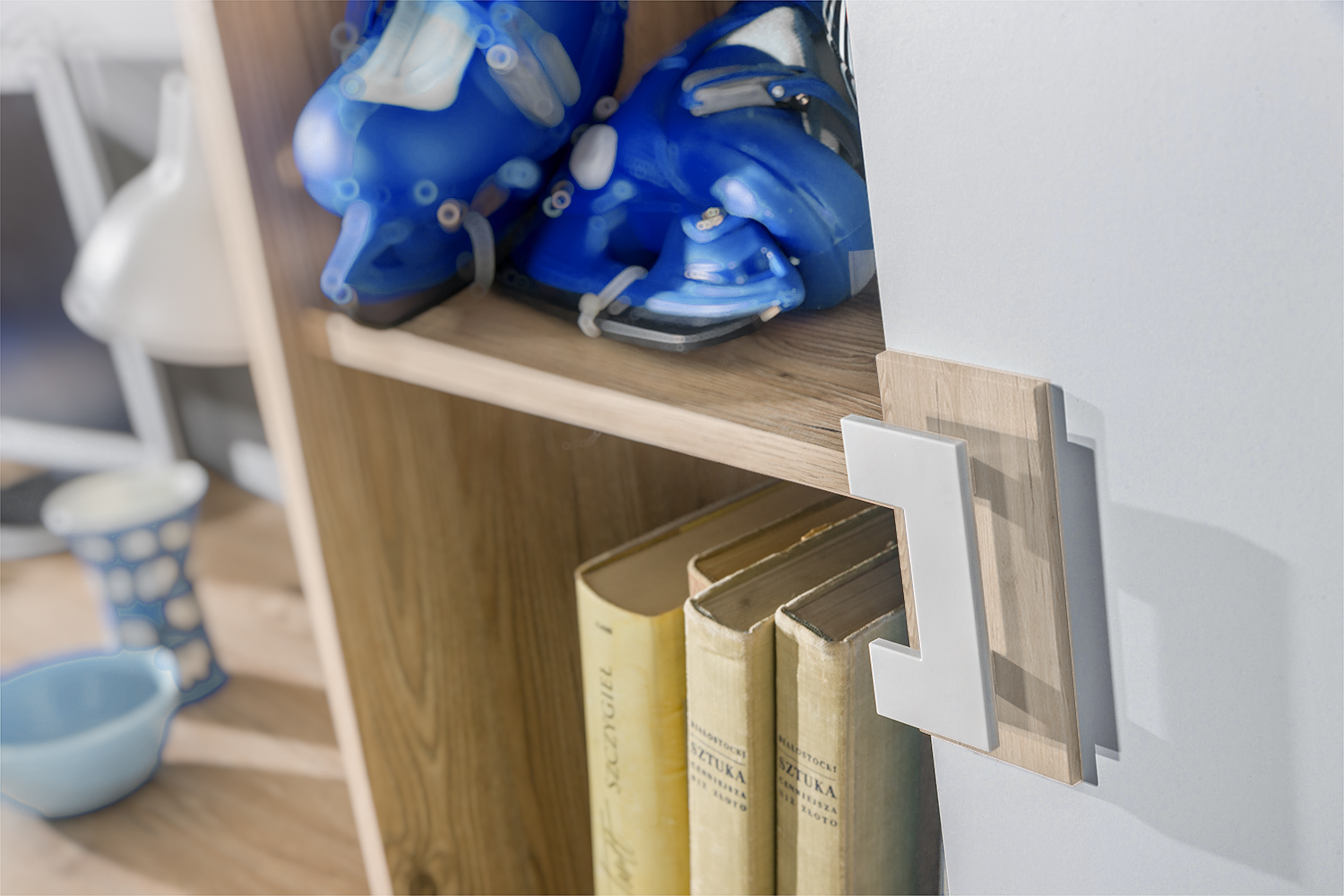 Elegantne linije, jednostavan oblik i uravnotežen kontrast boja čine Regal Nico 4 – Domel idealnim izborom za sve koji traže moderan i funkcionalan komad namještaja. Tekstura hrasta donosi osjećaj topline i domaćeg ugođaja, dok bijela boja dodaje dašak lakoće. Takva kombinacija savršeno pristaje i svjetlijim i tamnijim podovima i zidovima.