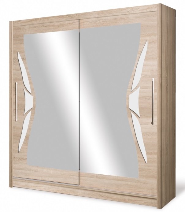 Ormar Dome DO8-20 je opremljen s dvije klizne fronte s velikim ogledalom te je iznimno je prostran i funkcionalan. S lijeve strane ormara se nalaze četiri prostrane police, a s desne široka šipka za vješanje odjeće. Ormar DO8-15 je izrađen od visokokvalitetne lamelirane ploče za namještaj koja će zbog svoje izdržljivosti i pouzdanosti služiti korisniku dugi niz godina u svakodnevnoj uporabi. Ormar je dostupan u kombinaciji boje sonoma hrasta s umetcima u bijelom sjaju.
