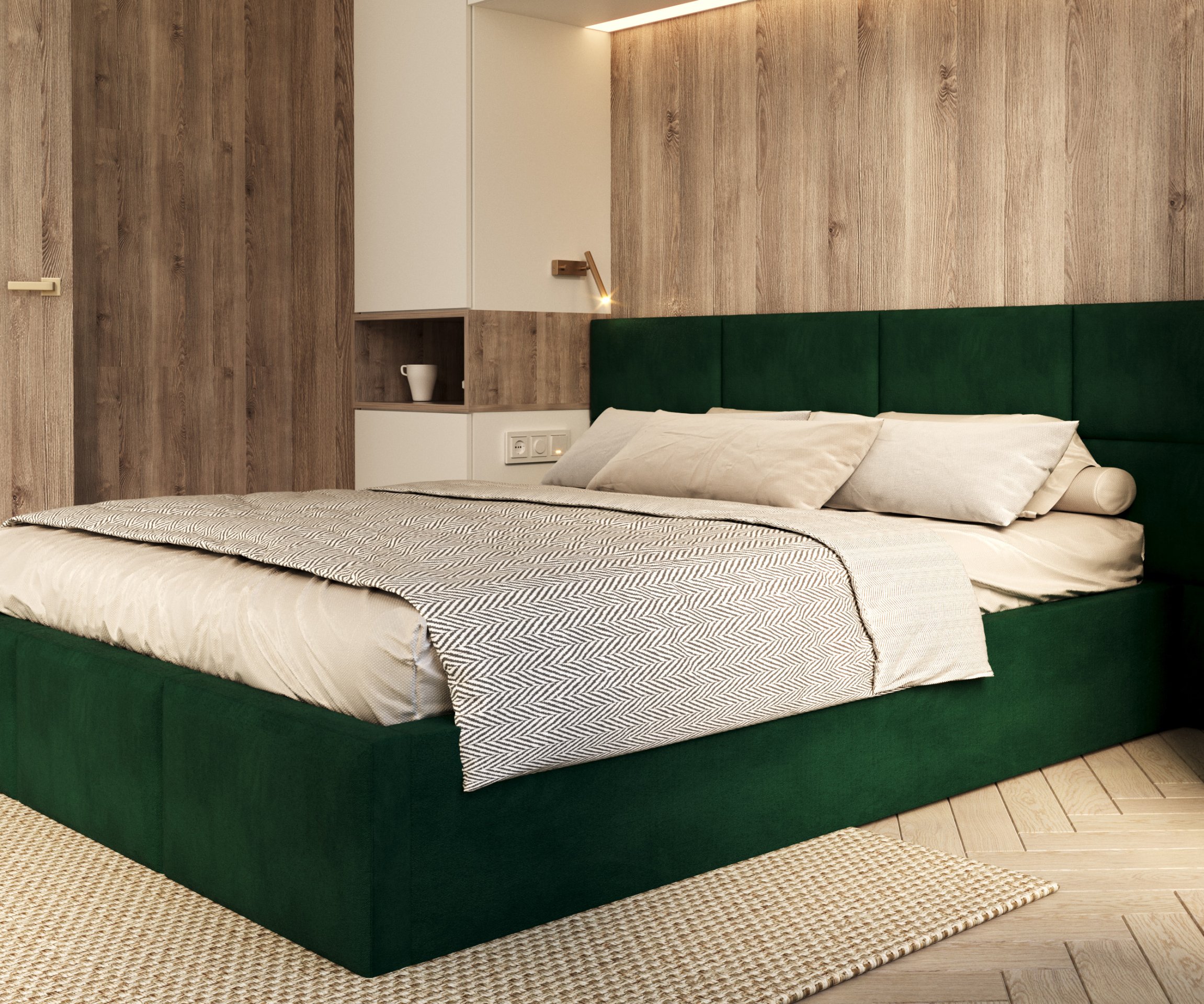 Podizni krevet Denver dostupan je u više boja i tkanina, što omogućuje savršeno usklađivanje s postojećim namještajem. Masivna struktura i jednostavne linije daju mu moderan, ali bezvremenski izgled. Zahvaljujući mogućnosti odabira različitih tkanina, možete ga smjestiti u minimalistički, skandinavski ili klasično uređen interijer. Vodoravno prošivene površine dodaju vizualnu dinamiku, a istovremeno zadržavaju smiren izgled koji u spavaćem prostoru stvara opuštenu atmosferu.