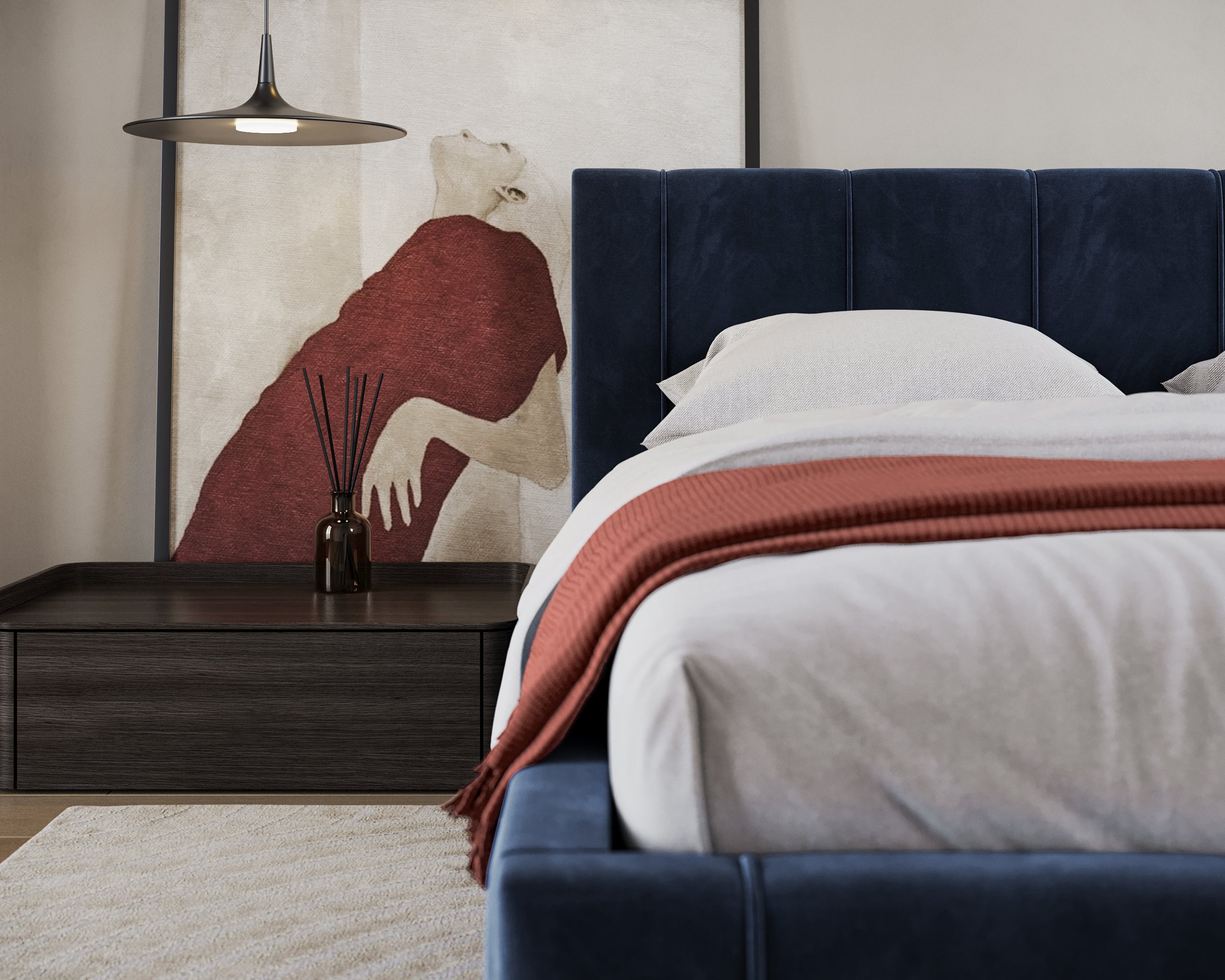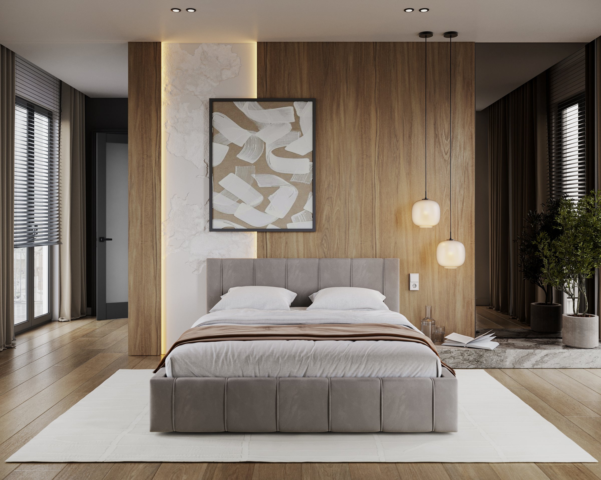 Okvir kreveta tapeciran je i dizajniran tako da se lijepo uklapa u različite stilove uređenja interijera – od modernih minimalističkih spavaćih soba do klasičnih ambijenata. Zahvaljujući širokom izboru nijansi i tkanina, krevet možete u potpunosti prilagoditi svom ukusu i karakteru prostora.