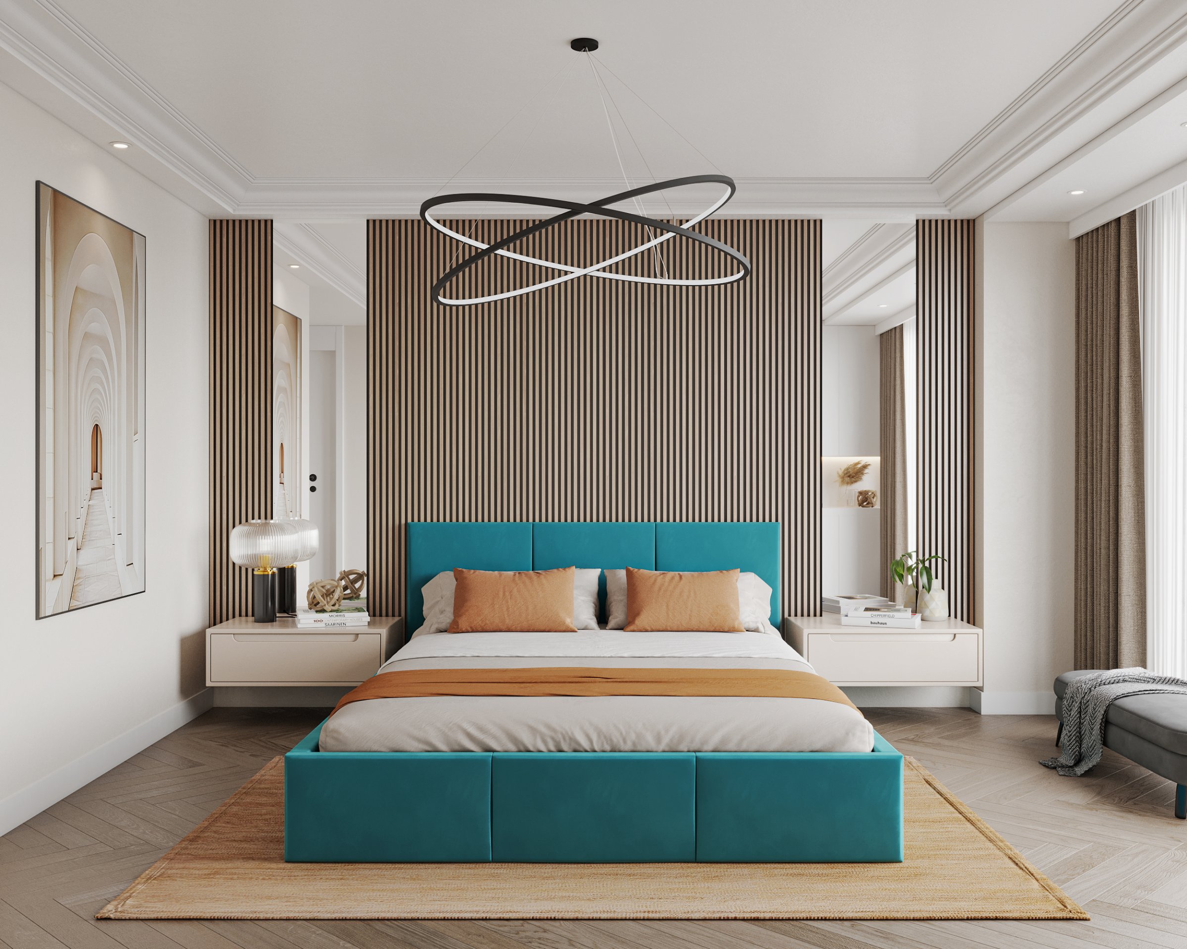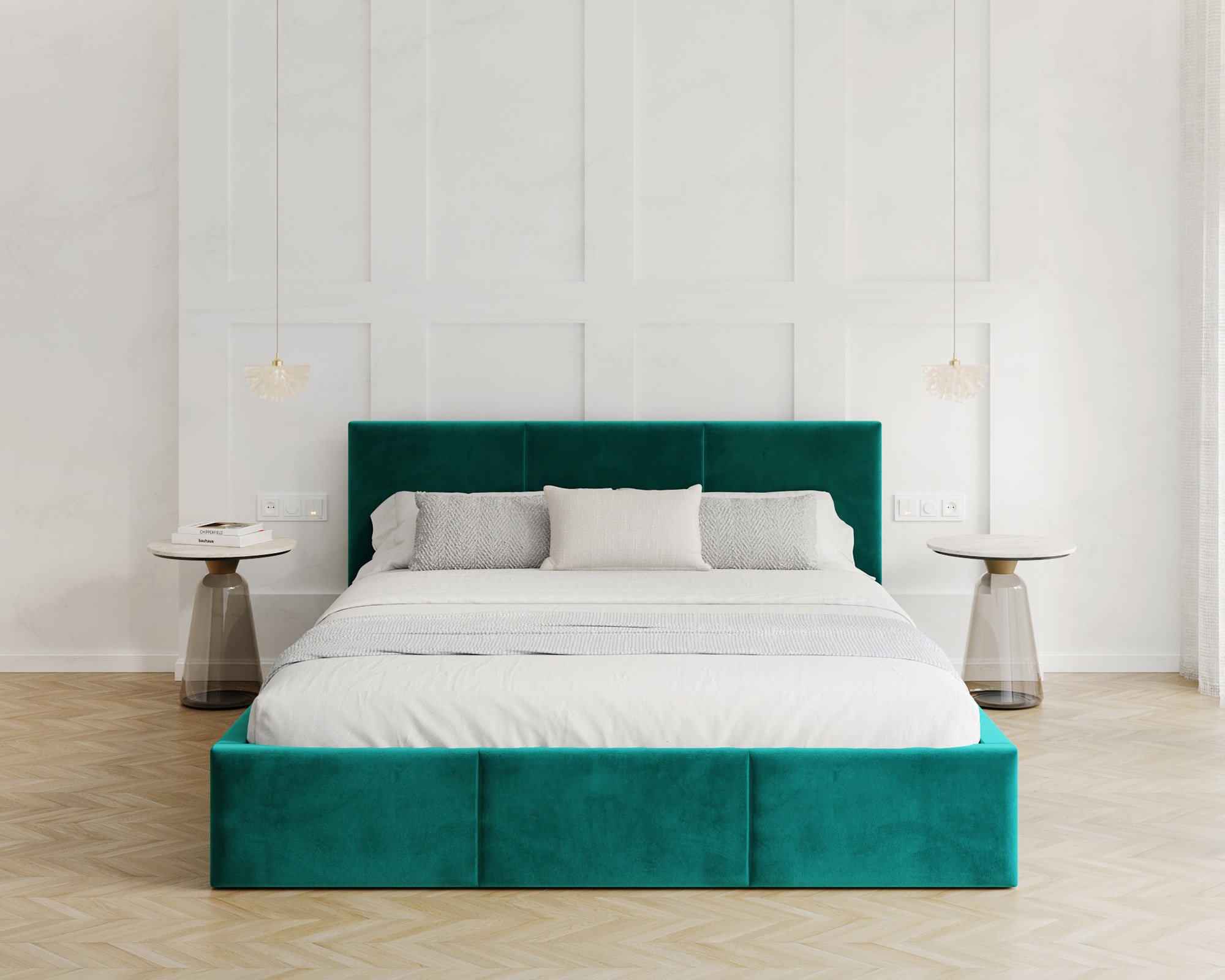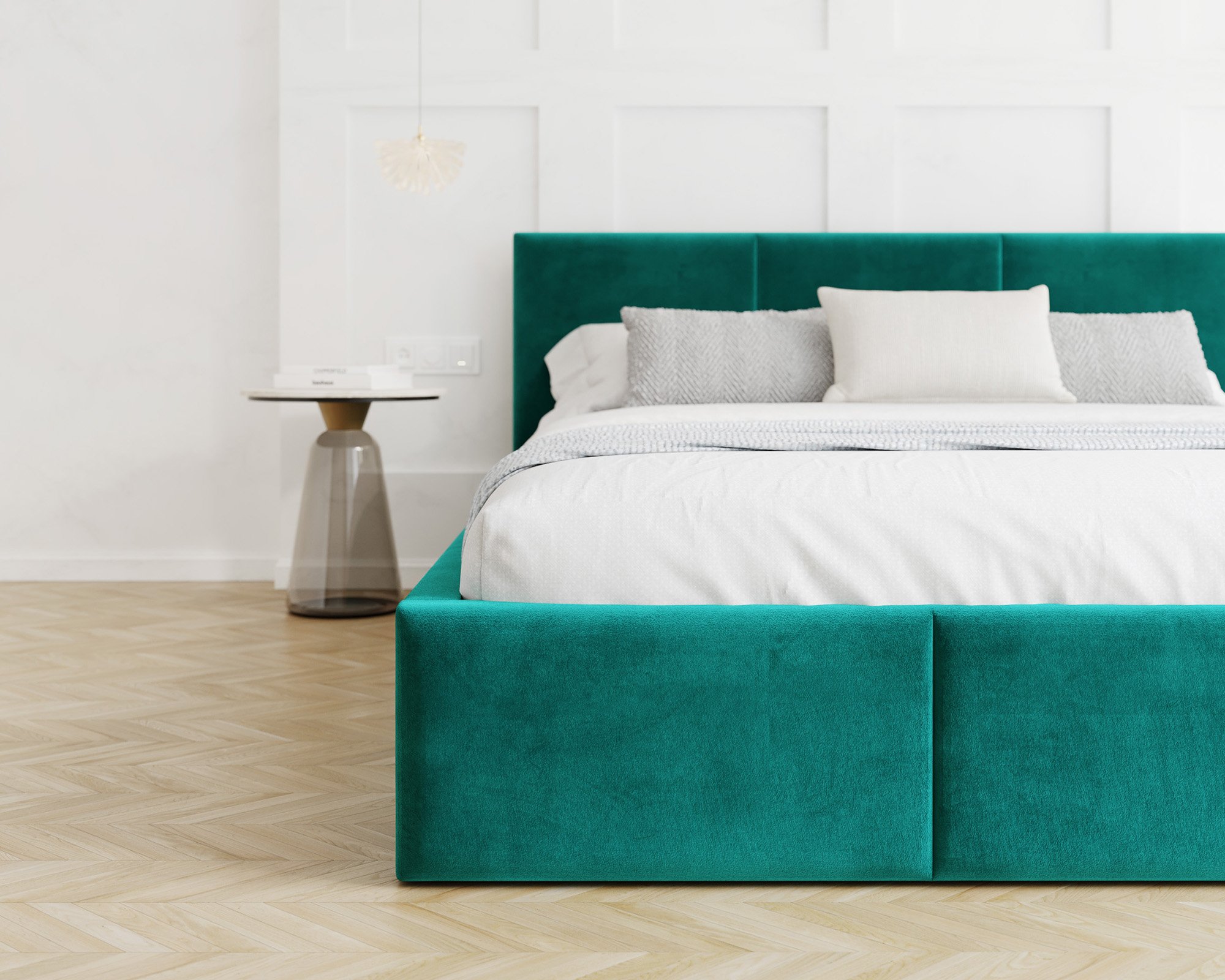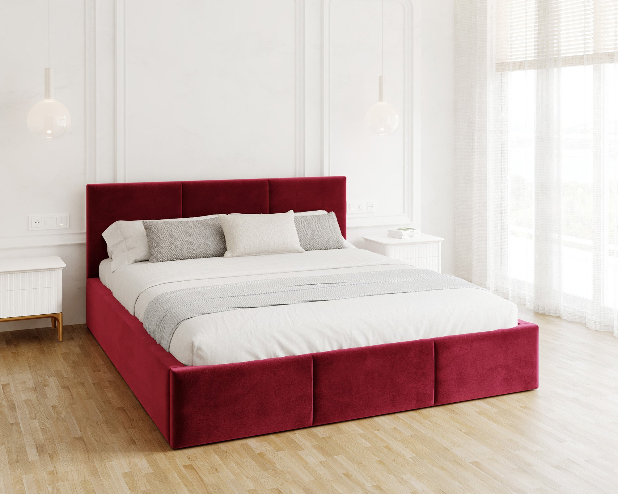 Uzglavlje i prednji dio kreveta prošiveni su vodoravnim linijama koje stvaraju ugodan vizualni ritam i meku površinu za naslon. Takav dizajn omogućuje udobno čitanje ili gledanje televizije u krevetu, jer pruža pouzdanu potporu leđima. Vodoravni šavovi istodobno osiguravaju da krevet izgleda elegantno i moderno, bez obzira na odabranu kombinaciju boja.
