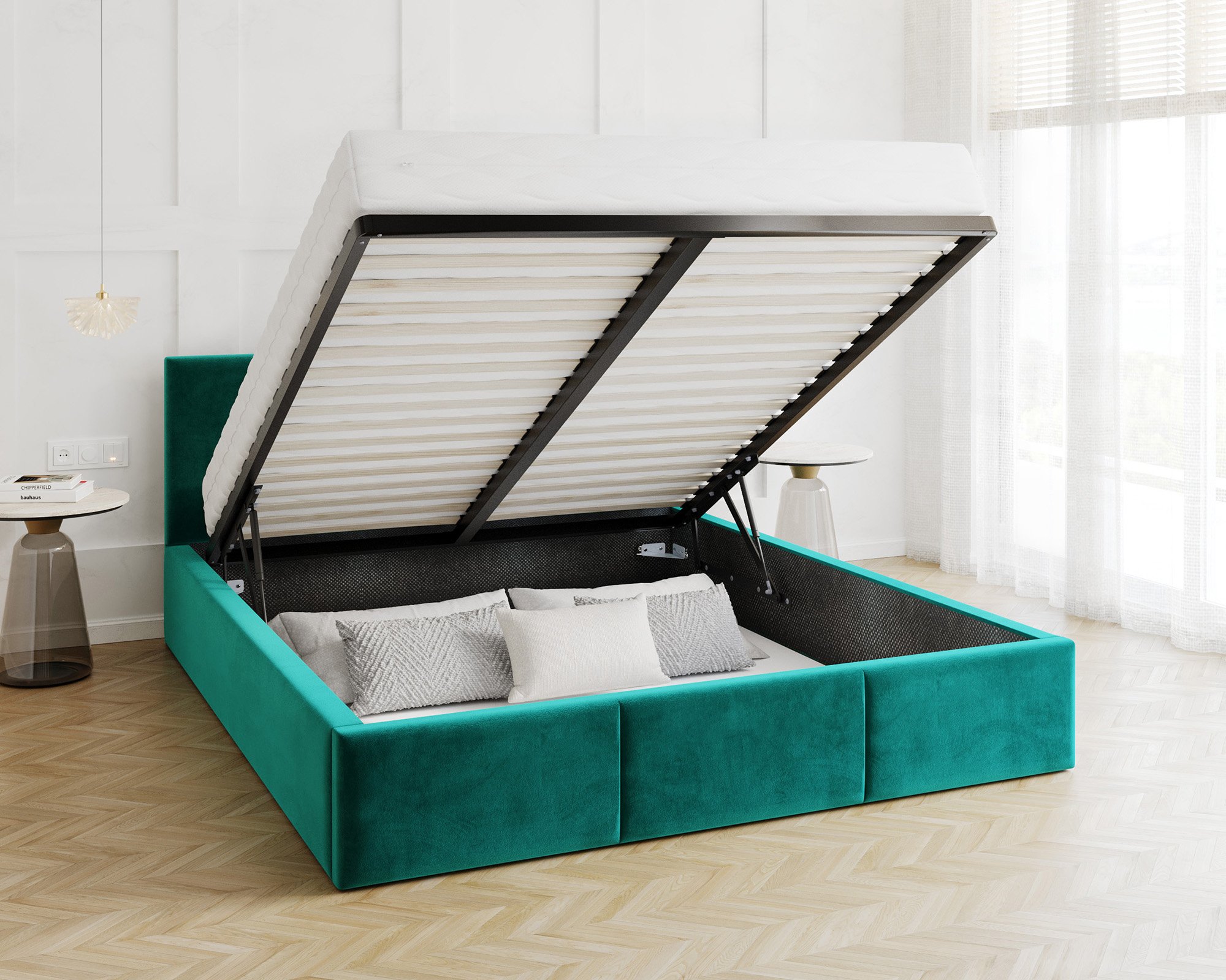 Jedna od najvećih prednosti kreveta Fresia je podizni mehanizam koji omogućuje jednostavan pristup velikoj ladici za posteljinu. Ova funkcija idealna je za pohranu deka, jastuka ili sezonske odjeće, jer pomaže u održavanju spavaće sobe urednom i prostranom. Osnovna izvedba uključuje drveni podizni mehanizam, dok je čelični mehanizam dostupan uz nadoplatu – on pruža još veću stabilnost i dugotrajnu pouzdanost pri svakodnevnoj upotrebi.