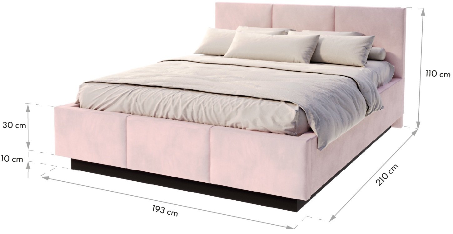 Krevet je dizajniran kao tapecirani okvir s letvičastim dnom, što osigurava optimalnu potporu za madrac i udobnu ležeću površinu. Budući da ležište nije uključeno, korisnik može sam odabrati madrac prema svojim željama i potrebama.