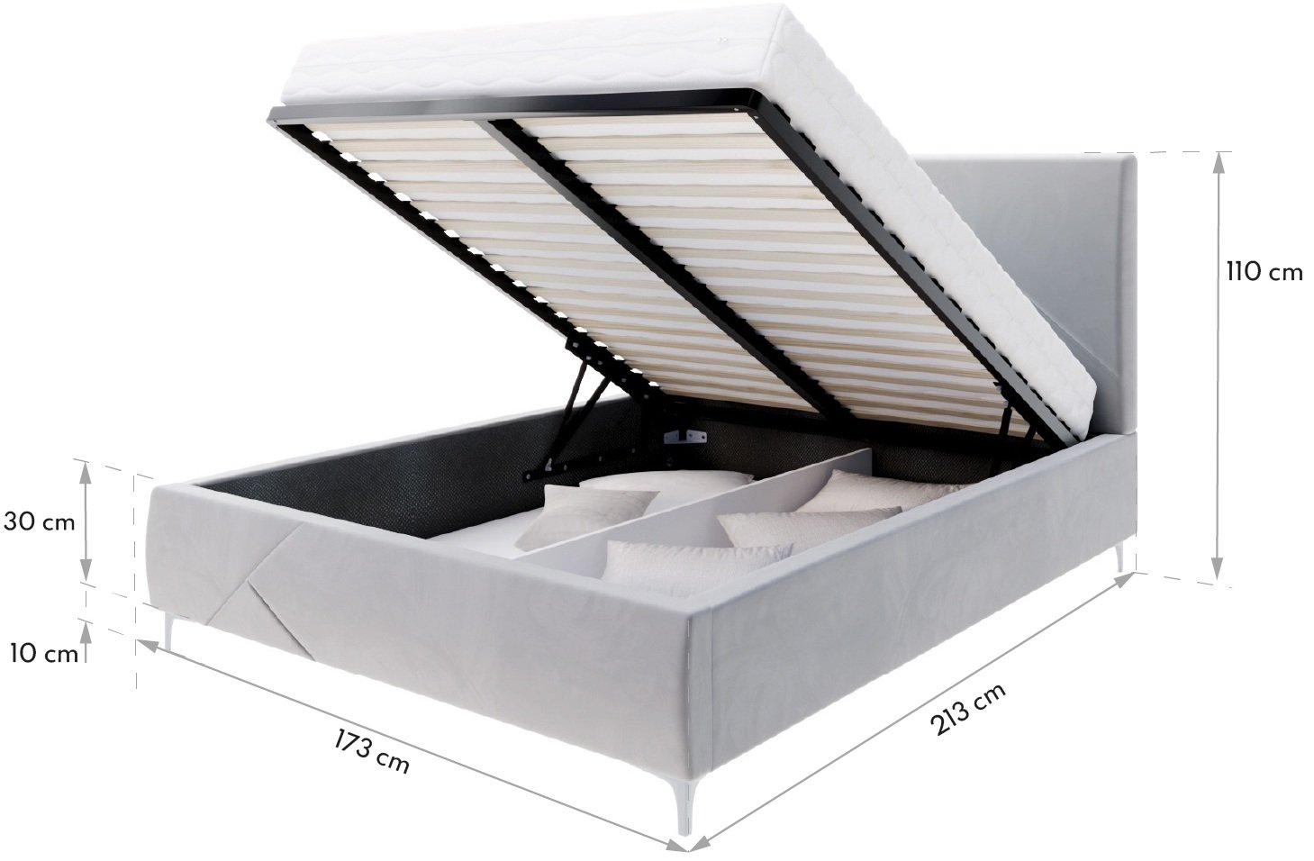Pod krevetom se skriva veliki prostor za pohranu koji nadopunjuje kvalitetno letvičasto dno. Zajedno čine praktično rješenje za sve koji žele spojiti funkcionalnost i estetiku u jednom komadu namještaja. Podizni mehanizam djeluje glatko i sigurno, bez potrebe za većim naporom pri podizanju ležišta.