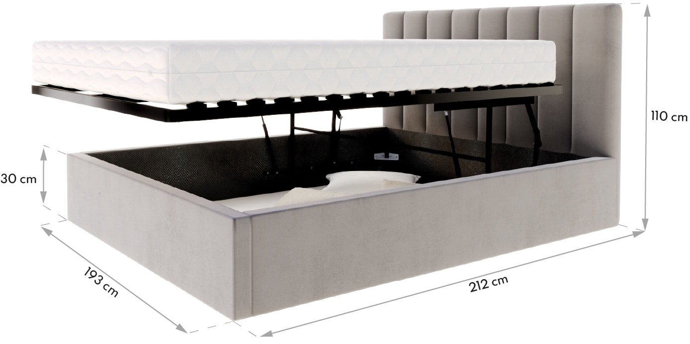 Krevet Justin odlikuje se iznimno praktičnim sustavom podizanja ležišta. Podizni mehanizam je drveni i omogućuje da se ležajna površina podiže paralelno s okvirom kreveta, što omogućuje lak pristup prostoru za pohranu. Taj prostor je velik i seže sve do poda, pa je pogodan za pohranu posteljine, deka ili sezonske odjeće. Zbog dizajna pri kojem dno ladice izravno počiva na podu, u njemu možete bezbrižno čuvati i teže predmete, bez rizika od oštećenja konstrukcije.