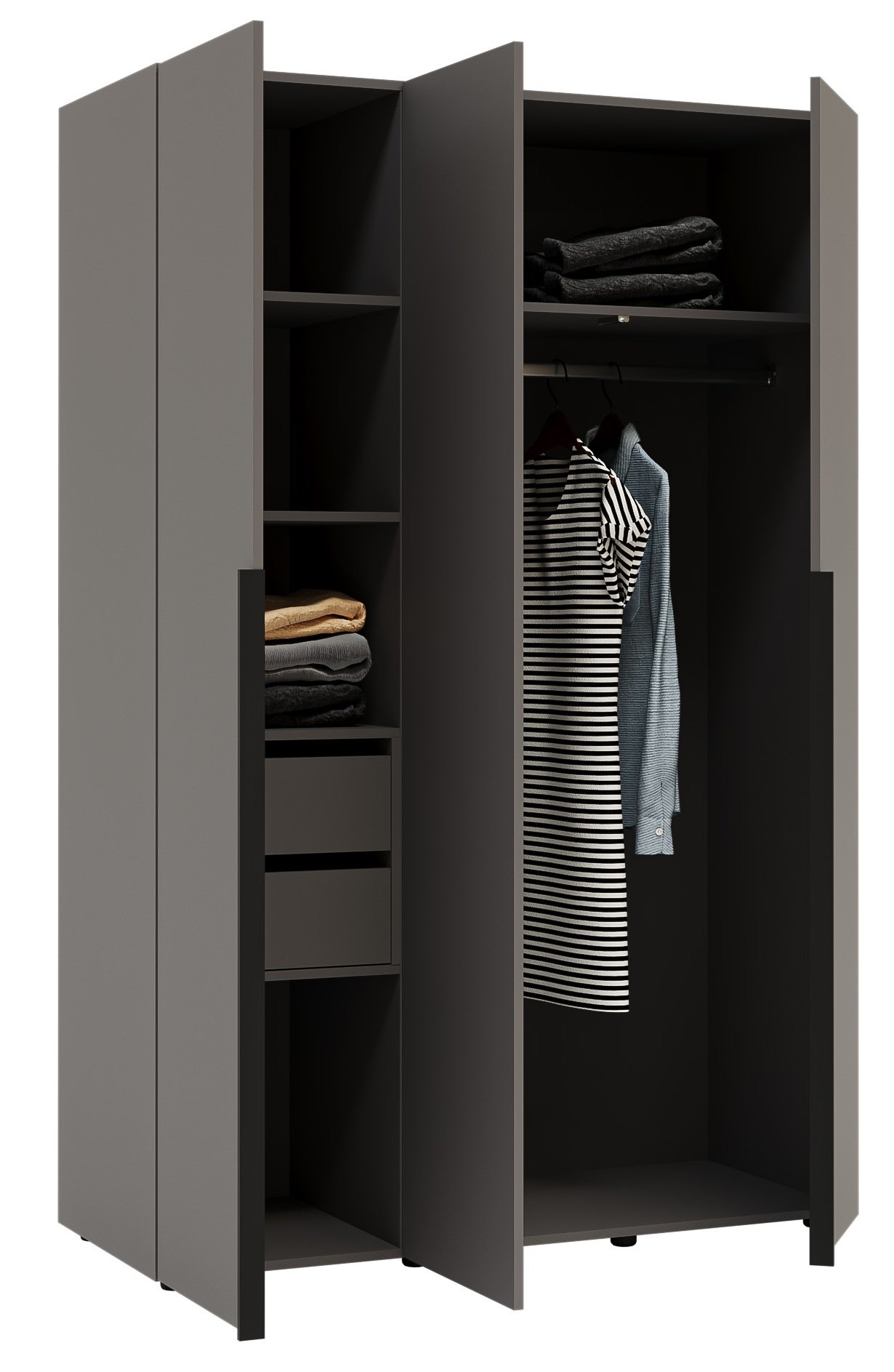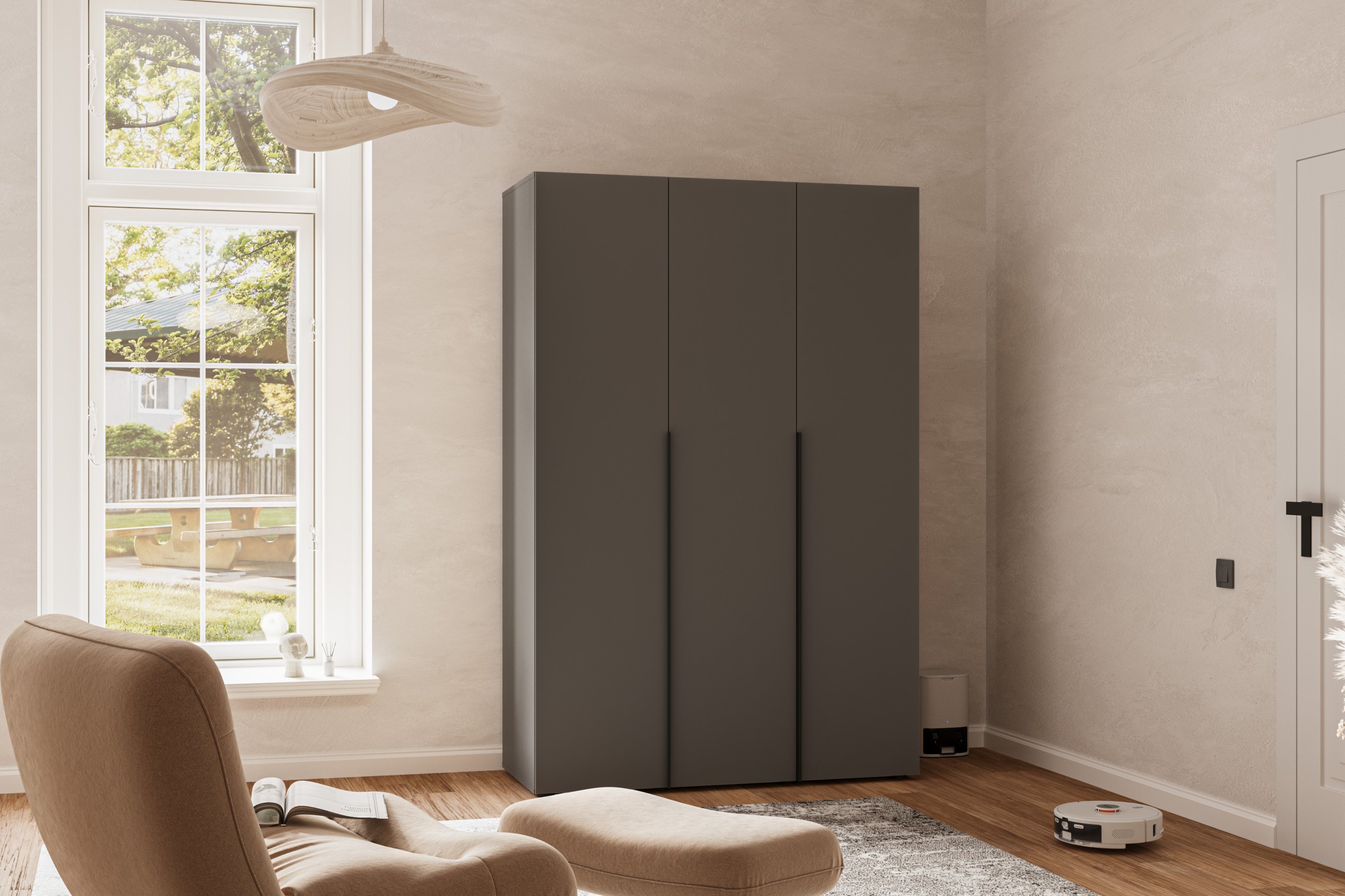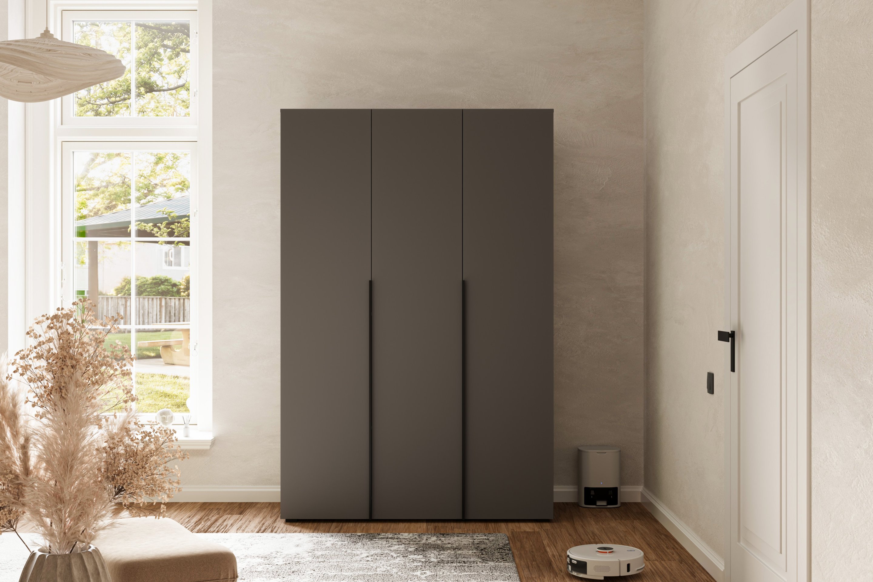 Potpuna organizacija prostora u spavaćoj sobi ili predsoblju ključ je uređenog i mirnog doma. U suvremenim interijerima cijenimo namještaj koji spaja funkcionalnost, kvalitetu i estetsku savršenost. Upravo zato je trovratni ormar u grafitno sivoj boji izvrstan izbor za sve koji žele unijeti eleganciju u svoj dom i istovremeno dobiti dovoljno prostora za pohranu odjeće, obuće i dodataka.