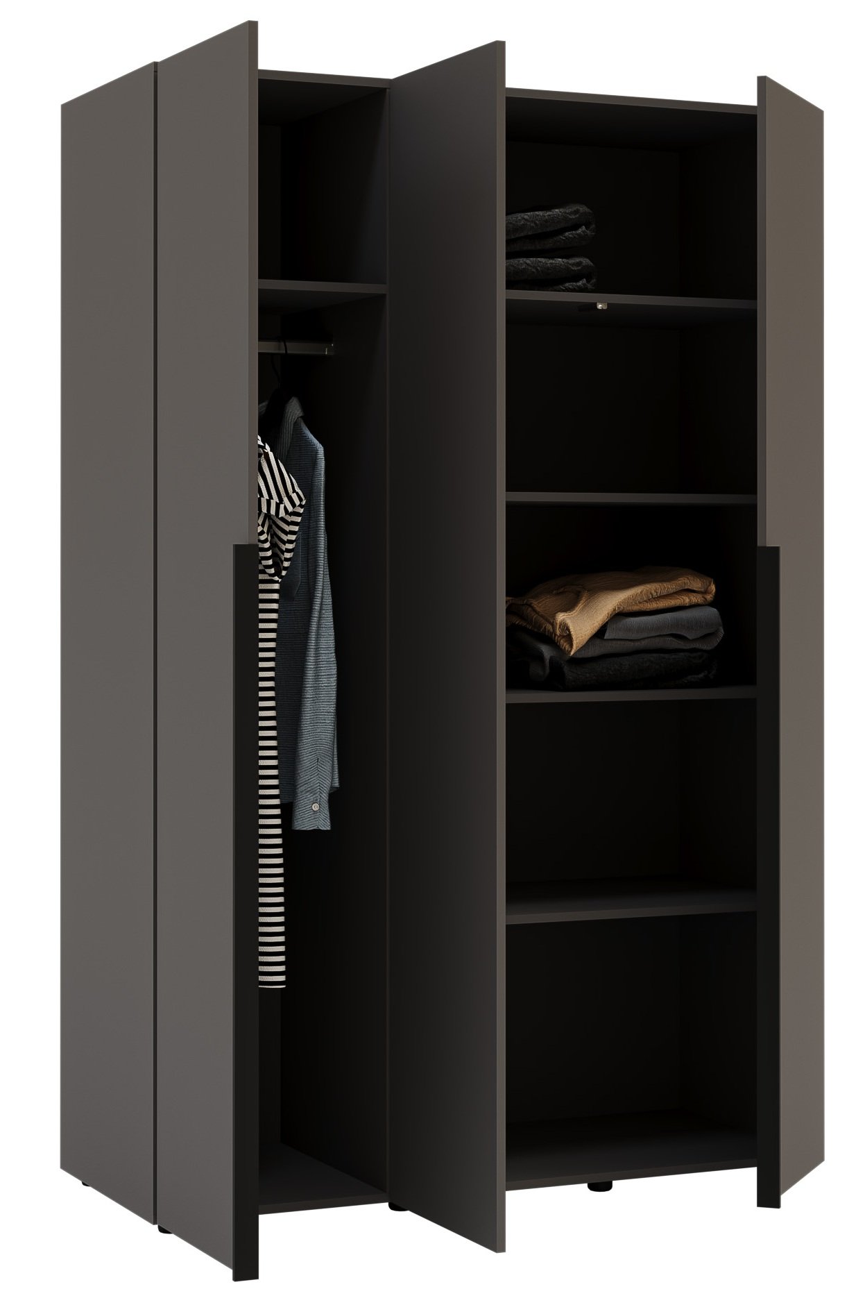 Uređena i funkcionalna garderoba je srce svakog doma, jer nam omogućuje da prostor održavamo preglednim, estetskim i bez nepotrebne natrpanosti. Ako tražite suvremeno rješenje koje spaja vrhunsku kvalitetu, praktičnost te elegantan izgled, tada je trodijelni ormar u grafitno sivoj boji pravi izbor za vas. Svojim modernim dizajnom i promišljenim unutarnjim rasporedom savršeno će se uklopiti u spavaću sobu, predsoblje ili mladu sobu.