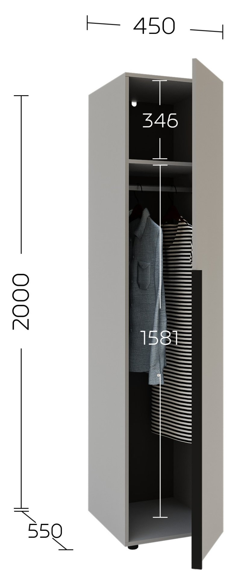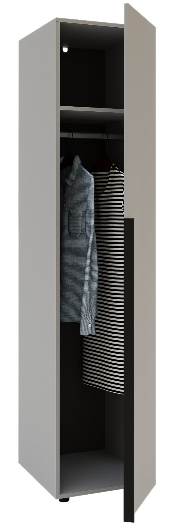 Pri odabiru namještaja važno je ne gledati samo na trenutačnu potrebu, već i na dugoročnu iskoristivost. Ovaj garderobni ormar s jednim vratima dizajniran je tako da će služiti dugi niz godina, bez gubitka svog modernog izgleda ili funkcionalnosti. Zahvaljujući kvalitetnim materijalima i preciznoj izradi, otporan je na svakodnevnu upotrebu, a istovremeno jednostavan za održavanje.