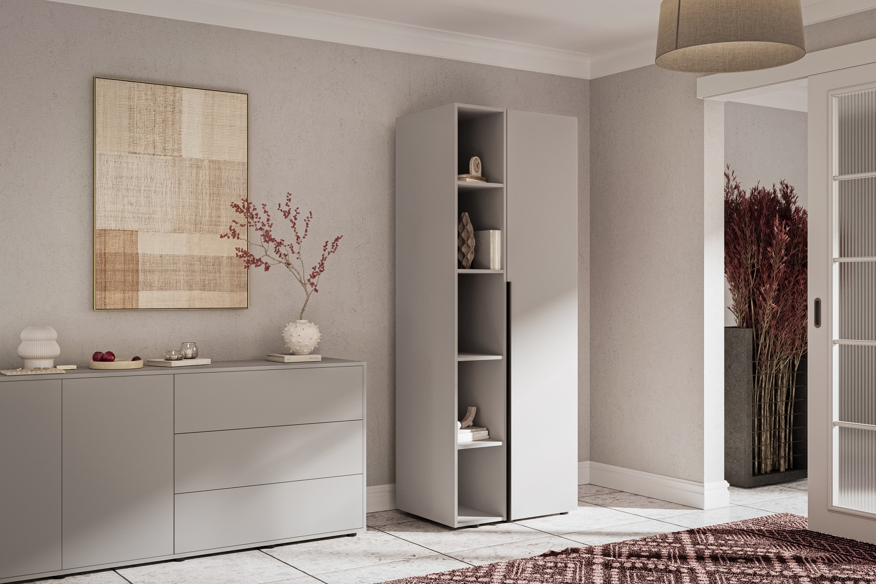 Posebna prednost ovog ormara su podesive noge skrivene u unutrašnjosti, što znači da se ormar uvijek prilagođava podu i stoji potpuno stabilno – čak i na nešto neravnim površinama. Dodatna funkcionalnost je mogućnost kupnje gornjeg ormara, s kojim dodatno povećavate kapacitet pohrane i optimalno iskorištavate prostor do stropa.