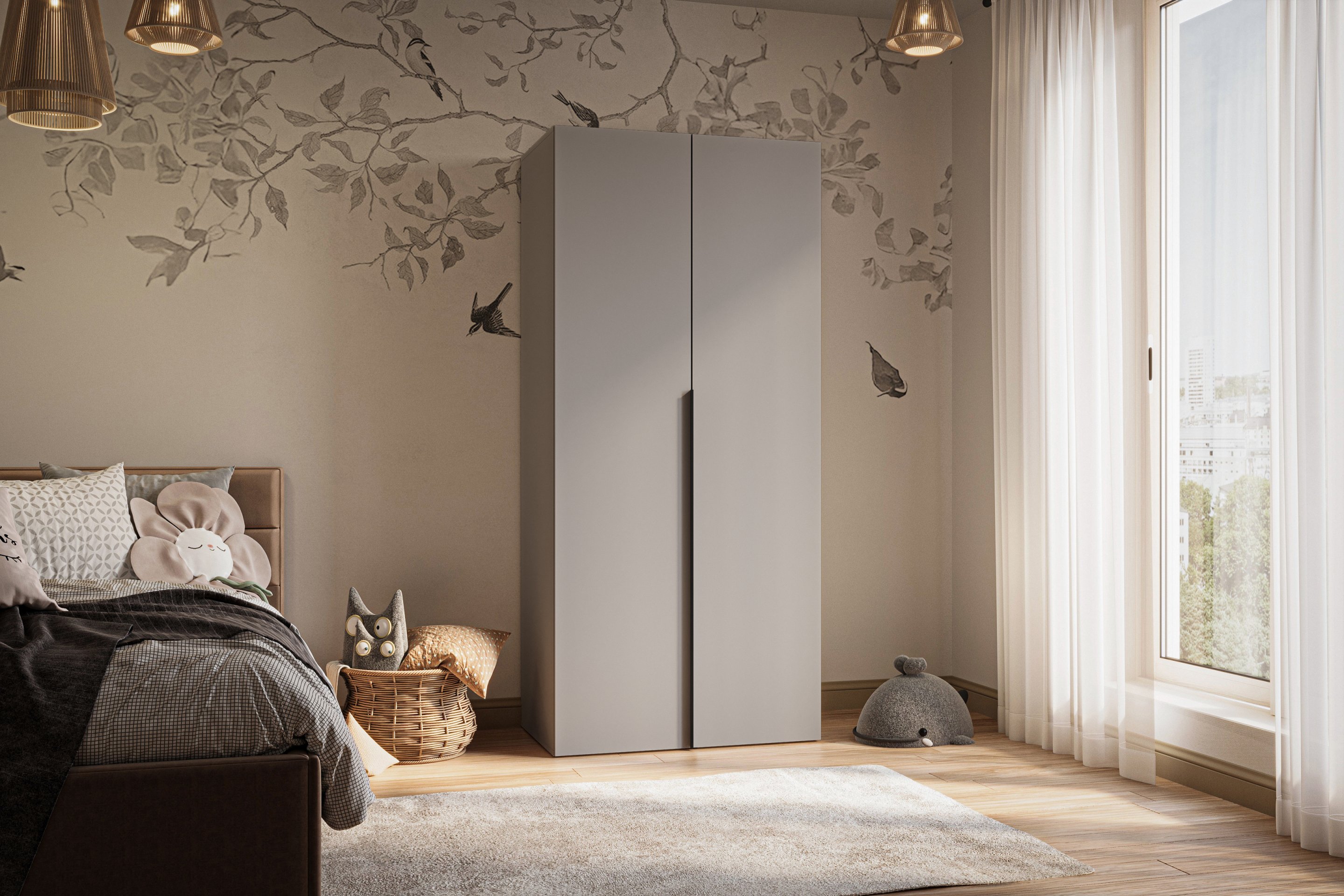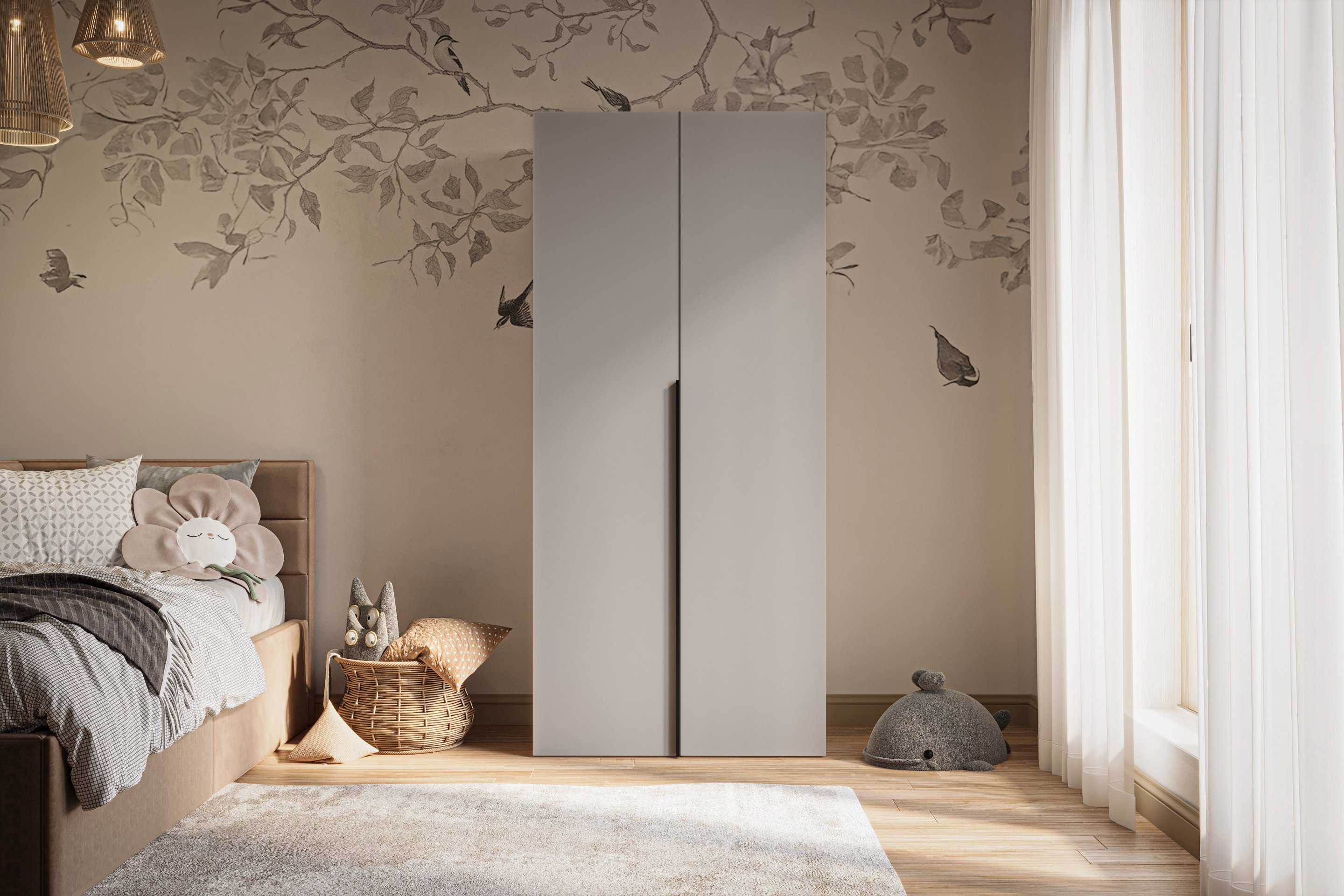 Izrađen od izdržljive laminirane ploče debljine 16 mm, ormar osigurava dug vijek trajanja i jednostavno održavanje. Siva boja djeluje suvremeno, a istovremeno neutralno, pa se bez problema uklapa s ostalim komadima namještaja i različitim nijansama zidova ili podova. Metalne ručke daju ormaru dašak modernosti i robusnosti, dok su podesive noge skrivene u unutrašnjosti, što osigurava stabilnost na različitim podlogama te estetski dovršen izgled bez ometajućih elemenata.
