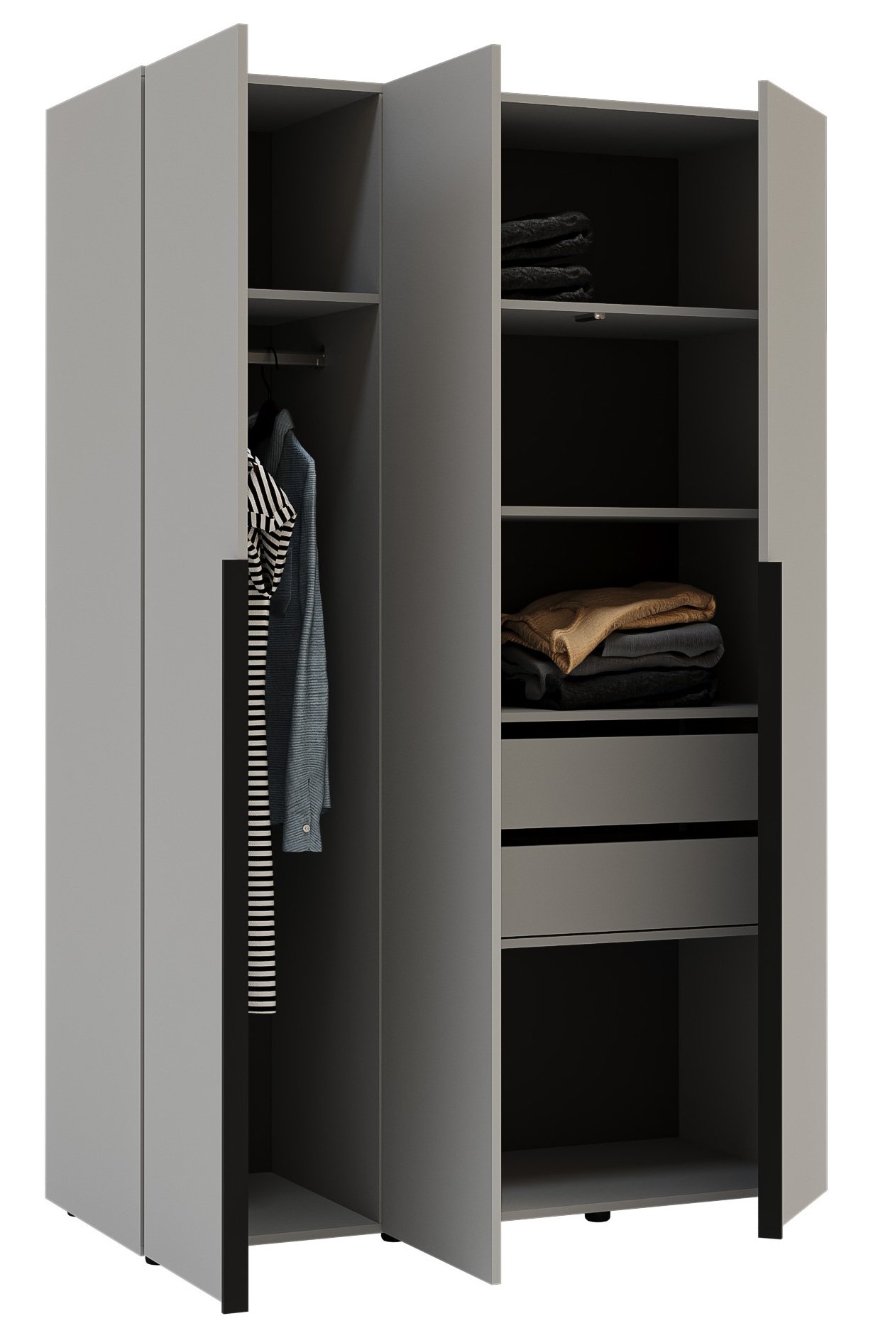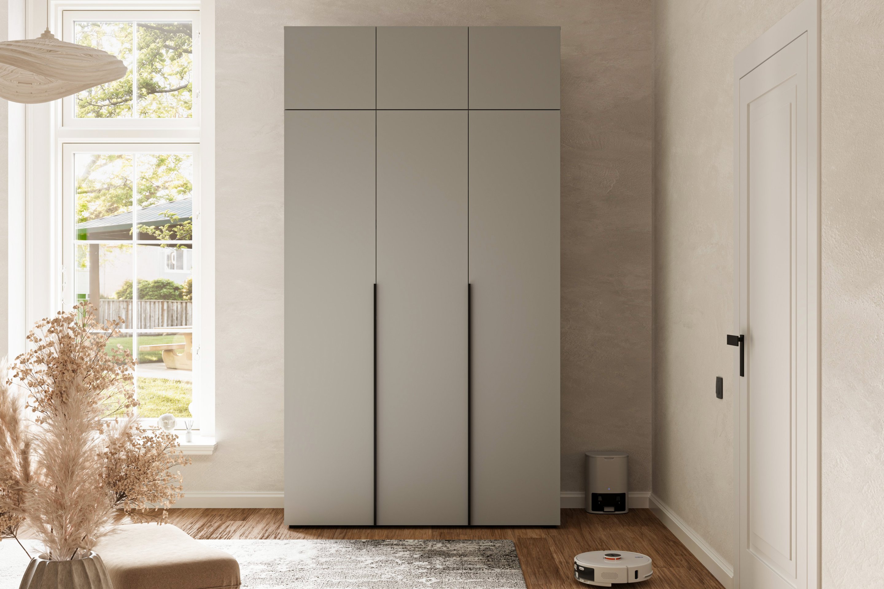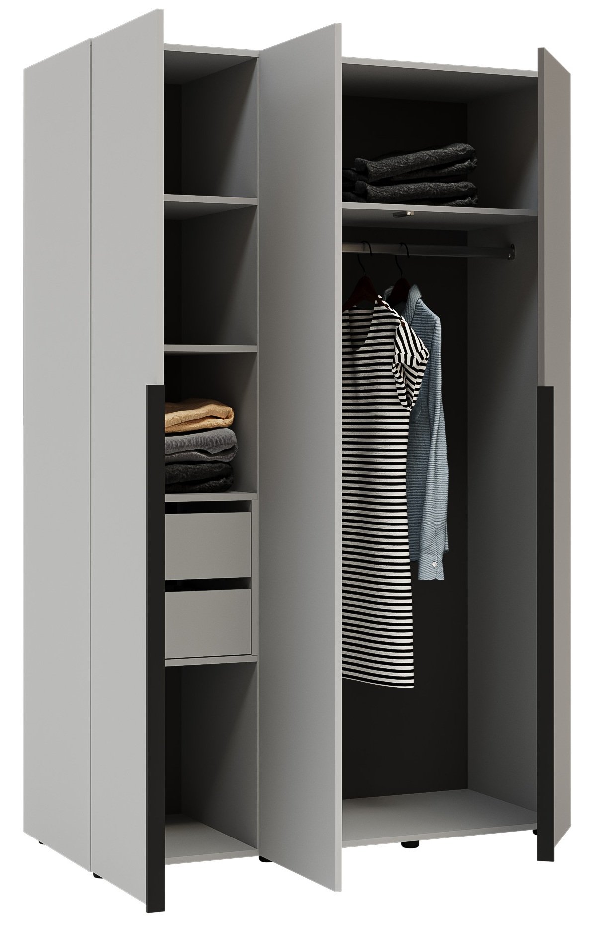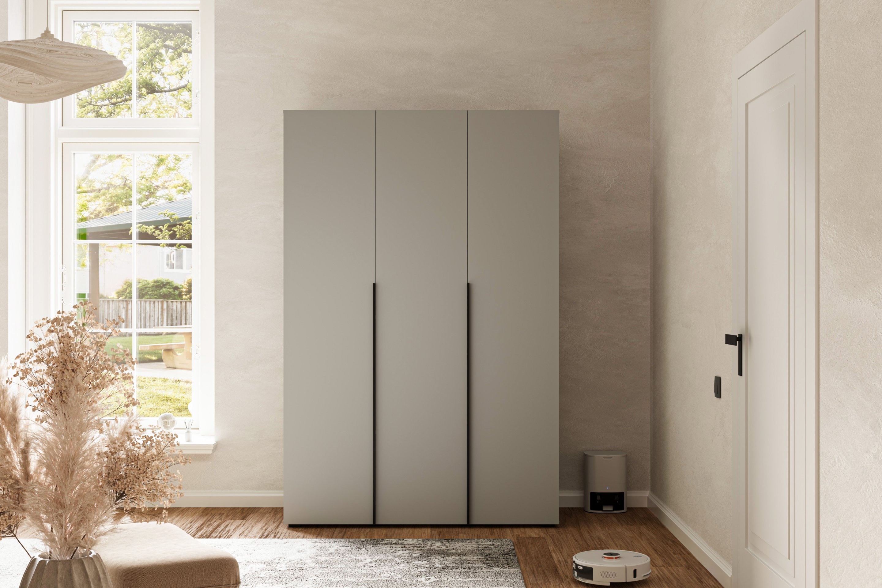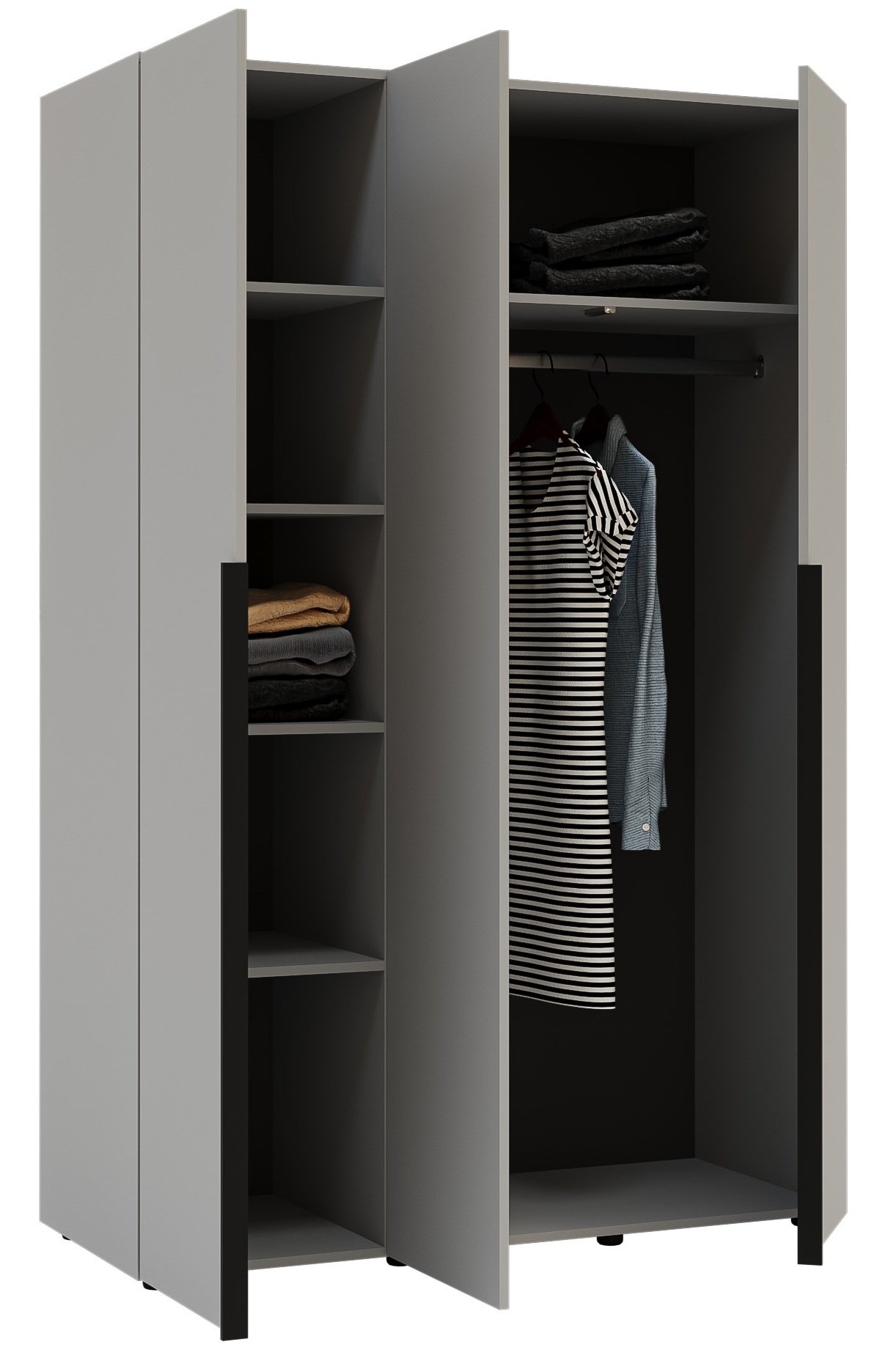 Zahvaljujući jednostavnom, ali elegantnom obliku, ormar se savršeno uklapa u suvremene trendove unutarnjeg uređenja. Siva boja stvara osjećaj mira i urednosti, a istovremeno omogućuje jednostavno kombiniranje s drugim bojama namještaja ili dekoracija. Možete ga upotpuniti drvenim ili crnim elementima i tako stvoriti harmoničan i sofisticiran ambijent.