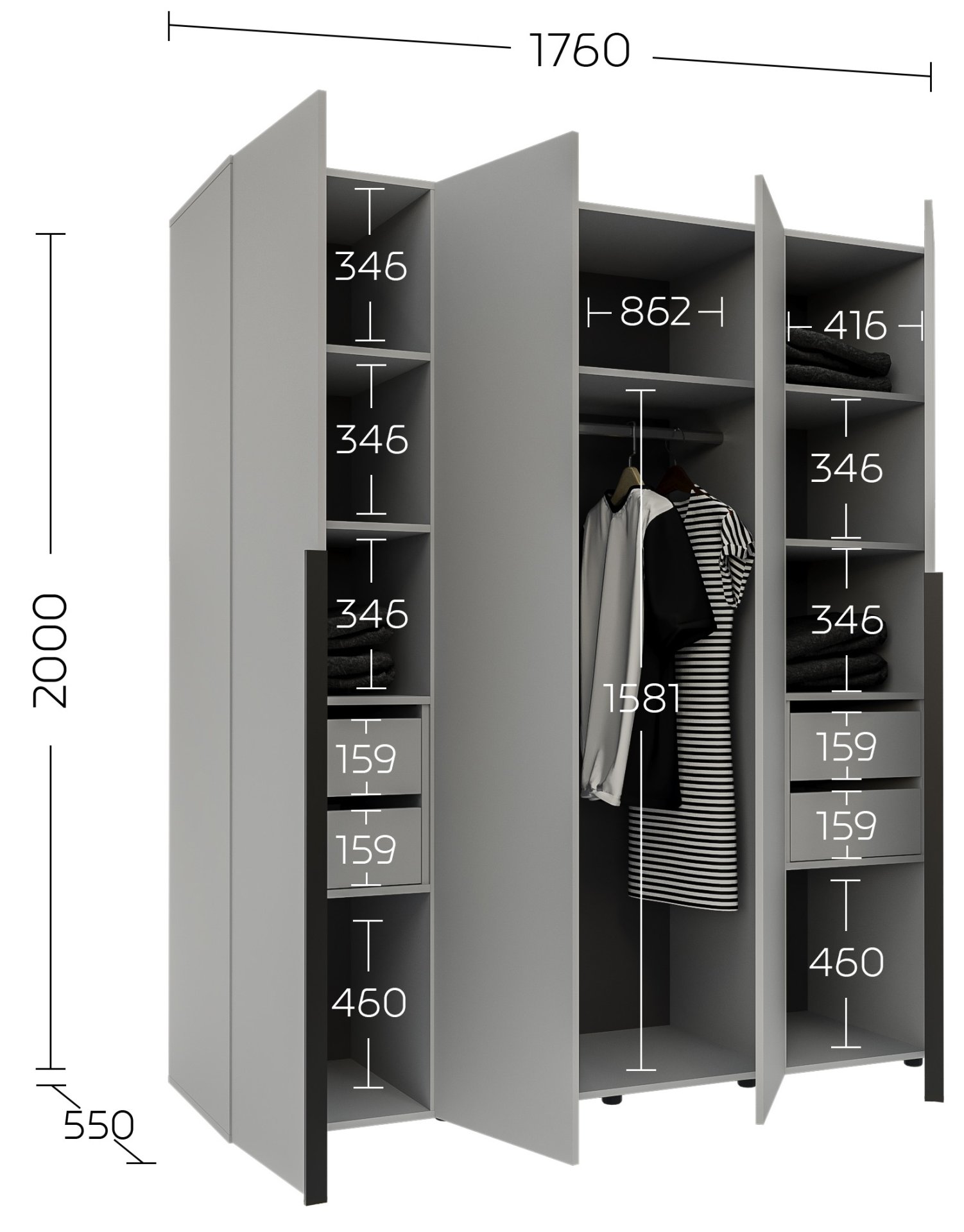 Svaki dom treba prostor gdje se red i estetika spajaju u savršenu ravnotežu. Garderobni ormar s četiri vrata Solo 4D T u elegantnoj sivoj boji dizajniran je upravo s tom namjerom – da vašem prostoru donese profinjen izgled, besprijekornu organizaciju te dugotrajnu kvalitetu. Svojim dimenzijama 176x55x200 cm nudi obilje prostora za pohranu odjeće, modnih dodataka, posteljine i drugih osobnih predmeta, a svojim modernim dizajnom nadopunjuje svaki stil unutarnjeg uređenja – od minimalističkog do klasičnog.
