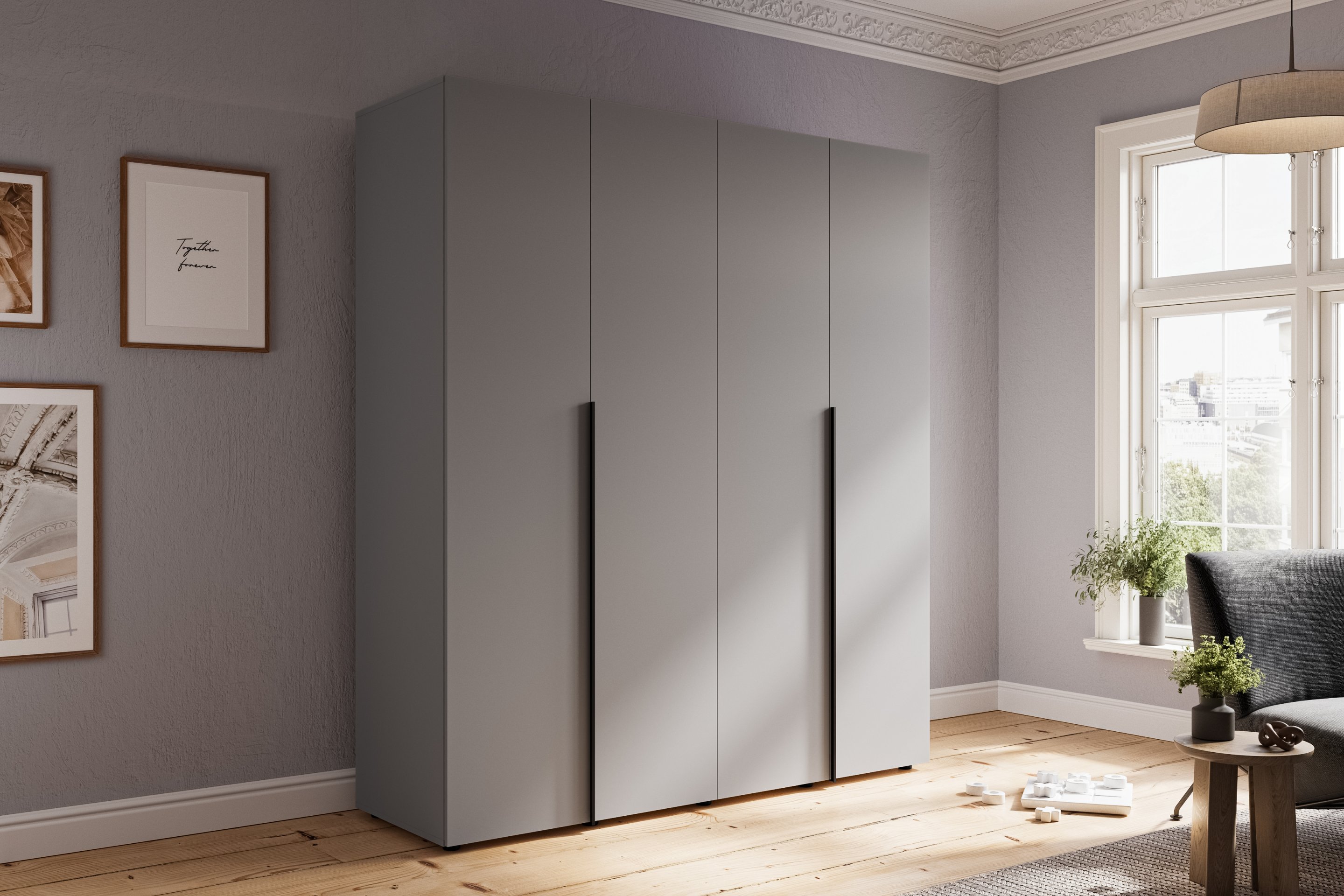 U vašem domu red je osnova za udoban i harmoničan boravak — i upravo zato je garderobni ormar jedan od ključnih komada namještaja koji ne brine samo o pohrani odjeće, već i o estetici prostora. Sa suvremenim i elegantnim dizajnom u smirenoj sivoj boji, četverokrilni garderobni ormar Solo 4D Sh postat će središnji element vaše spavaće sobe, predsoblja ili garderobnog prostora. Proizveden je u priznatoj tvornici Garant u Poljskoj, gdje se spajaju kvalitetna izrada, suvremena tehnologija i profinjen osjećaj za detalje.