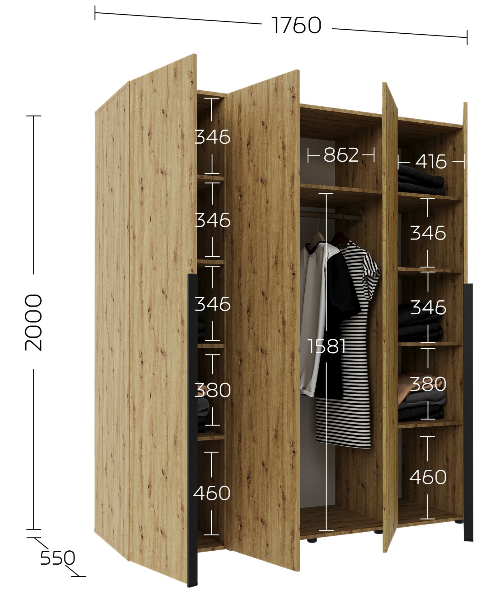 Ormar je idealan izbor i za manje prostore, gdje je važna svaka površina, i za veće sobe, gdje nadopunjuje cjelokupni izgled interijera. Zbog svoje visine od 200 cm iskorištava vertikalni prostor, a istovremeno zadržava kompaktan tlocrt koji ne opterećuje prostor. To je posebno važno u suvremenim stanovima, gdje je funkcionalnost od ključne važnosti.