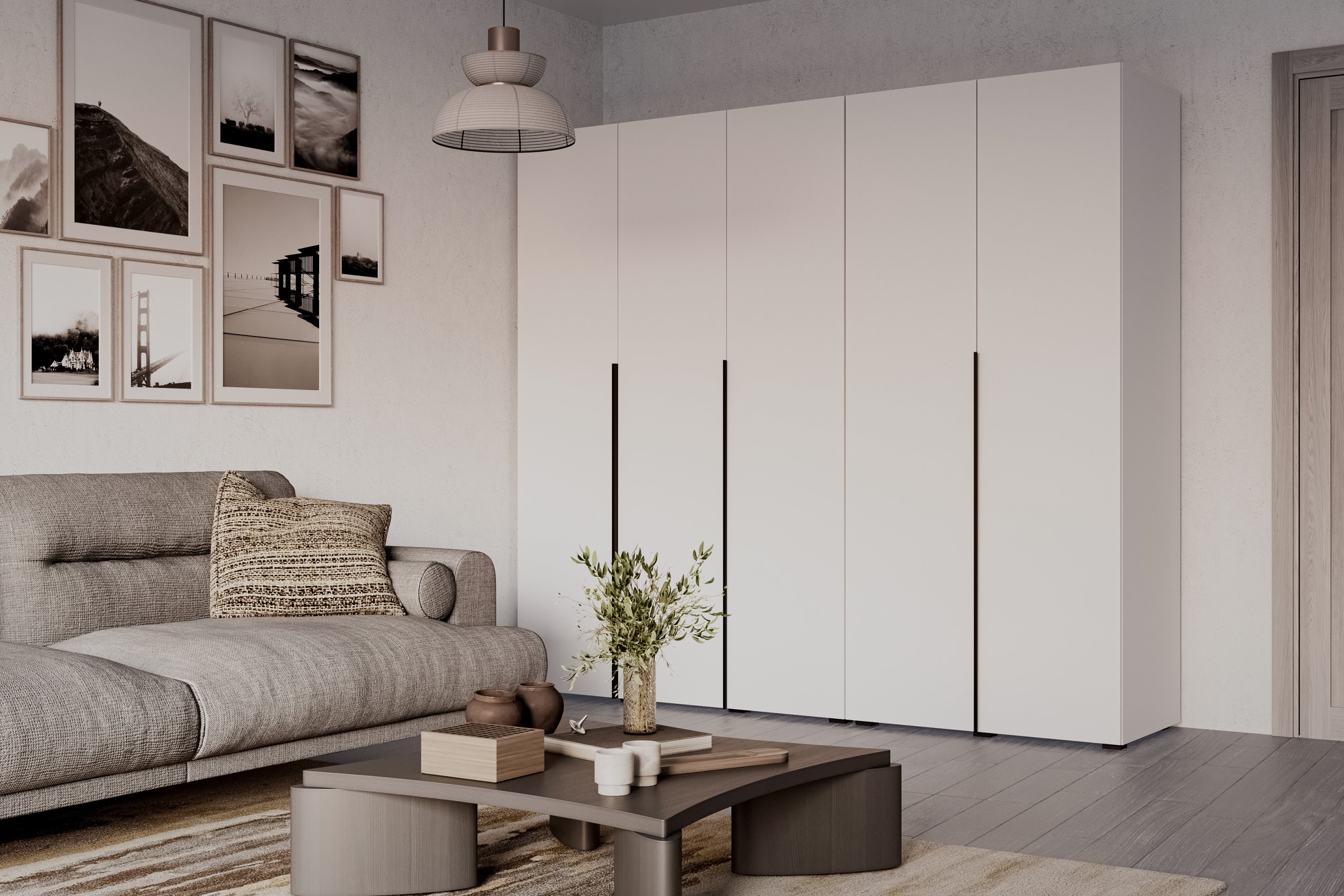 Ormar je dizajniran tako da se savršeno uklapa u različite stilove unutarnjeg uređenja – od minimalističkog i modernog do klasičnog. Svijetla nijansa nimfea alba prostoru dodaje osjećaj prostranosti i svježine, a istovremeno omogućuje jednostavno kombiniranje s ostalim komadima namještaja u spavaćoj sobi, predsoblju ili garderobi.