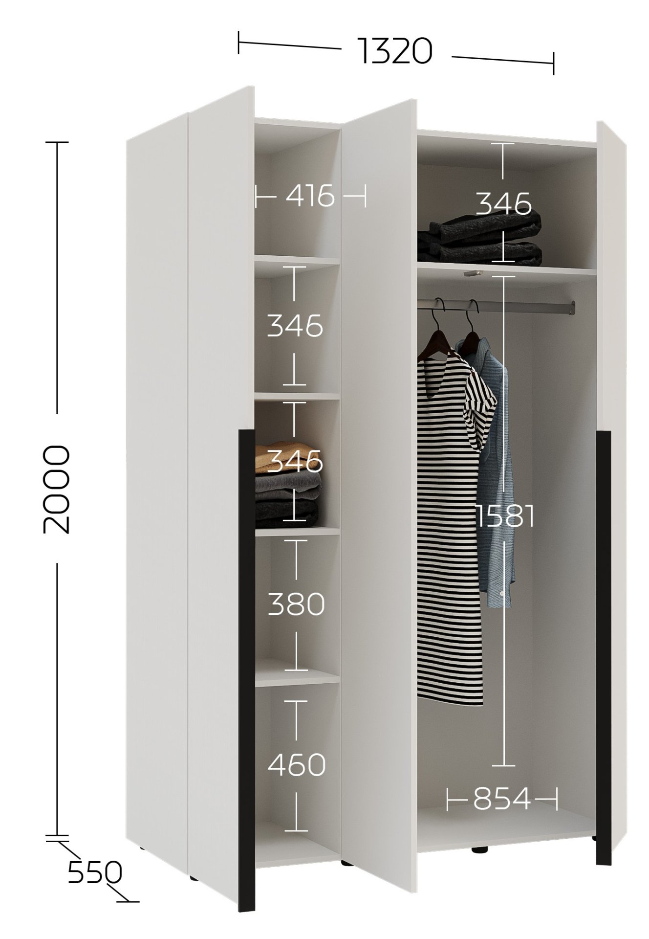 U vrijeme kada je važno iskoristiti svaki centimetar prostora, ovaj ormar za garderobu savršen je izbor za suvremene domove. Zbog svoje univerzalne boje i kompaktnih dimenzija (132x55x200 cm) lako se uklapa u manje sobe, a istovremeno nudi dovoljno prostora za svu vašu garderobu.