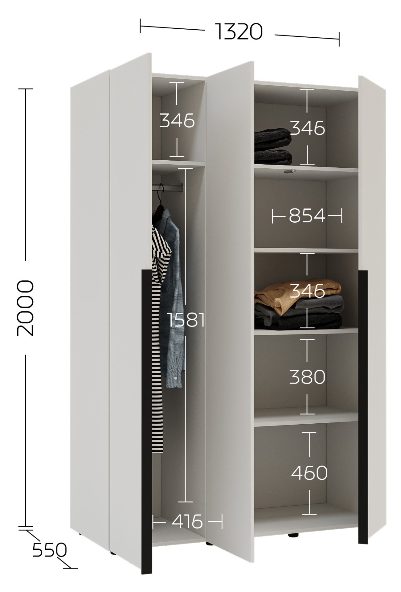 Ako tražite savršenu ravnotežu između suvremenog dizajna, funkcionalnosti i kvalitete, ovaj trovratni ormar izvrsni je izbor za vaš dom. Svojom čistom i svijetlom bojom nimfea alba unosi u prostor osjećaj prozračnosti, urednosti i elegancije. Njegove kompaktne dimenzije 132x55x200 cm omogućuju da se bez poteškoća uklopi i u manje spavaće sobe ili predsoblja, a istovremeno nudi iznenađujuće mnogo prostora za pohranu odjeće, posteljine i drugih osobnih predmeta. Ormar je izrađen od 16 mm laminirane ploče, što osigurava dug vijek trajanja, otpornost na ogrebotine i jednostavno čišćenje. To je materijal koji spaja estetiku i praktičnost – idealan za svakodnevnu upotrebu u suvremenim kućanstvima.