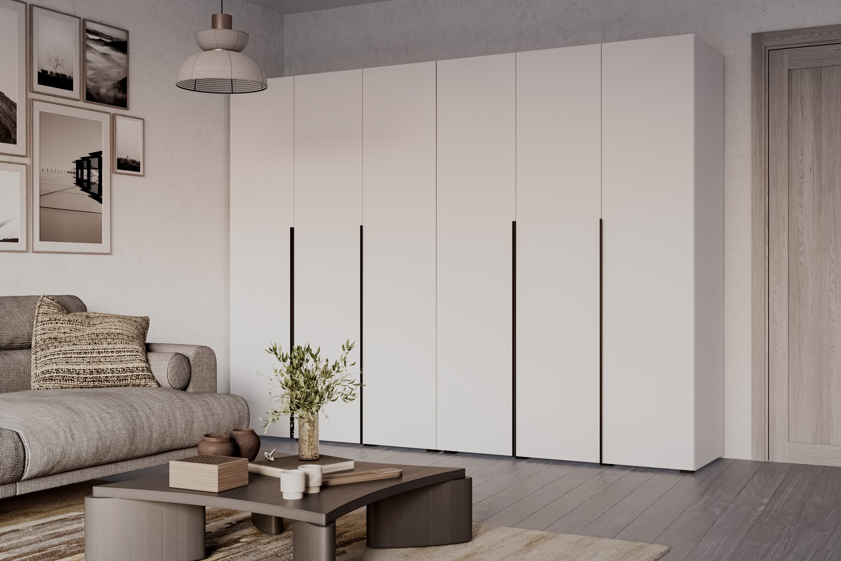 Ako tražite ormar koji spaja kvalitetu, estetiku i funkcionalnost, ovaj model je izvrstan izbor. Njegov dizajn omogućuje potpunu iskoristivost prostora, a elegantnim izgledom dopunjuje spavaću sobu, predsoblje ili garderobni prostor. Zahvaljujući neutralnoj paleti boja, lijepo se uklapa s ostalim komadima namještaja u bež, bijeloj ili prirodnoj boji drveta, pa ga možete lako uklopiti u već postojeći interijer.