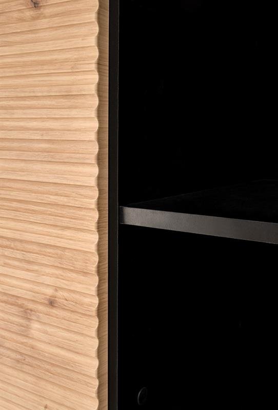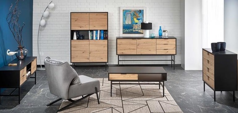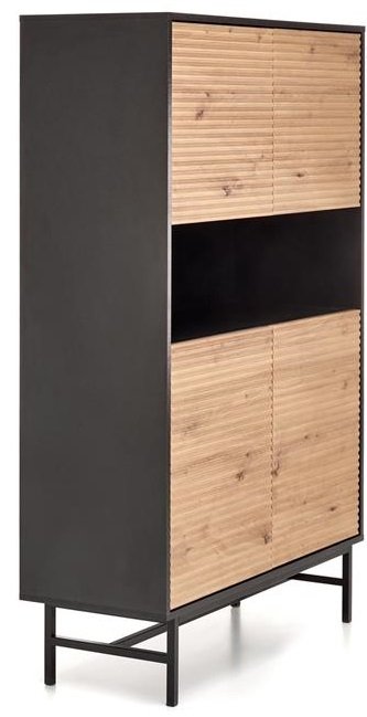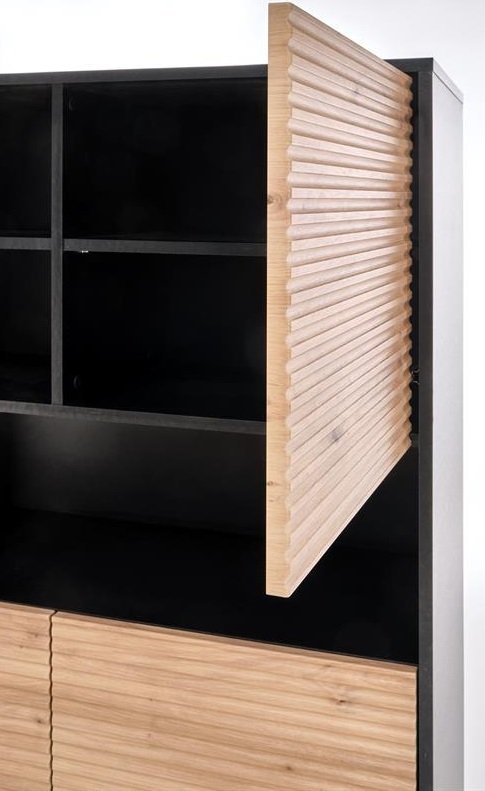 Komoda KM-3 Murano je iznimno elegantan prijedlog za moderan i originalan interijer, inovativan dizajn komode naglašen je frontama u kombinaciji crne boje i nijanse craft hrasta. Komoda osigurava obilje mjesta za odlaganje.