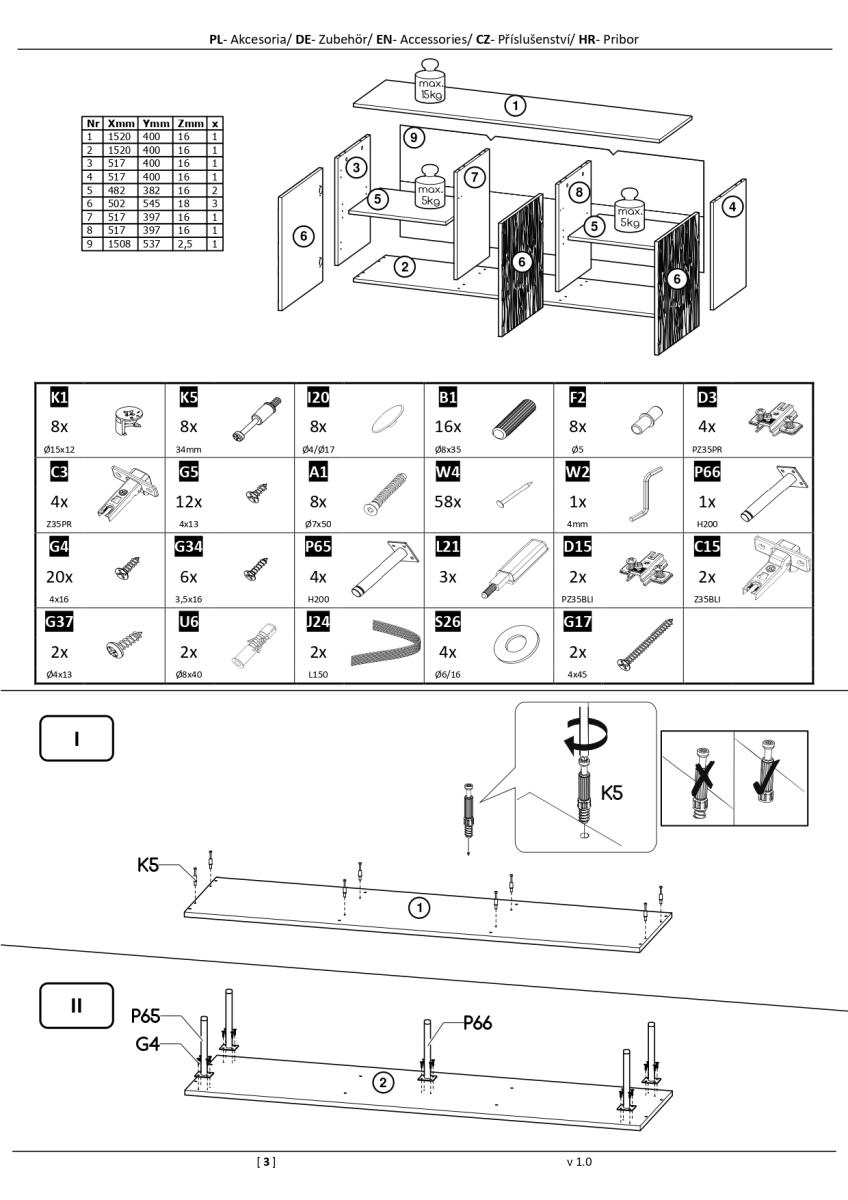 Materijal: Korpus: mat laminirana iverica 16 mm. Fronta: laminirana MDF ploča s folijom 18 mm, s neravnim uzorkom.