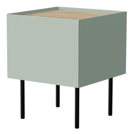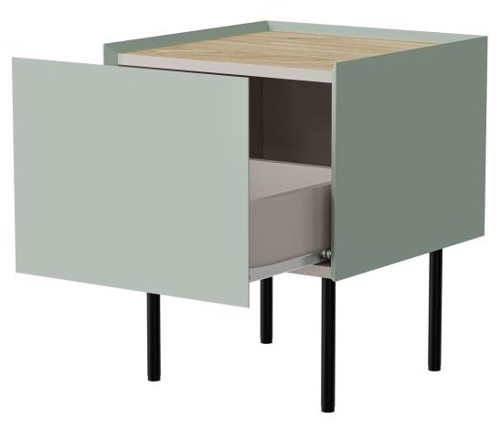Set noćnih ormarića Fellini u maslinastoj boji odlikuje se smirenim, a istovremeno suvremenim izgledom. Njegove čiste linije i glatke površine lijepo se uklapaju u moderne, skandinavske ili industrijske interijere. Zbog jednostavnog dizajna bez ručki, cjelokupan izgled je harmoničan i lagan, što stvara osjećaj prostranosti i u manjim spavaćim sobama. Metalne noge dodaju suptilan kontrast i vizualnu lakoću, a pritom osiguravaju stabilnost i funkcionalnost.