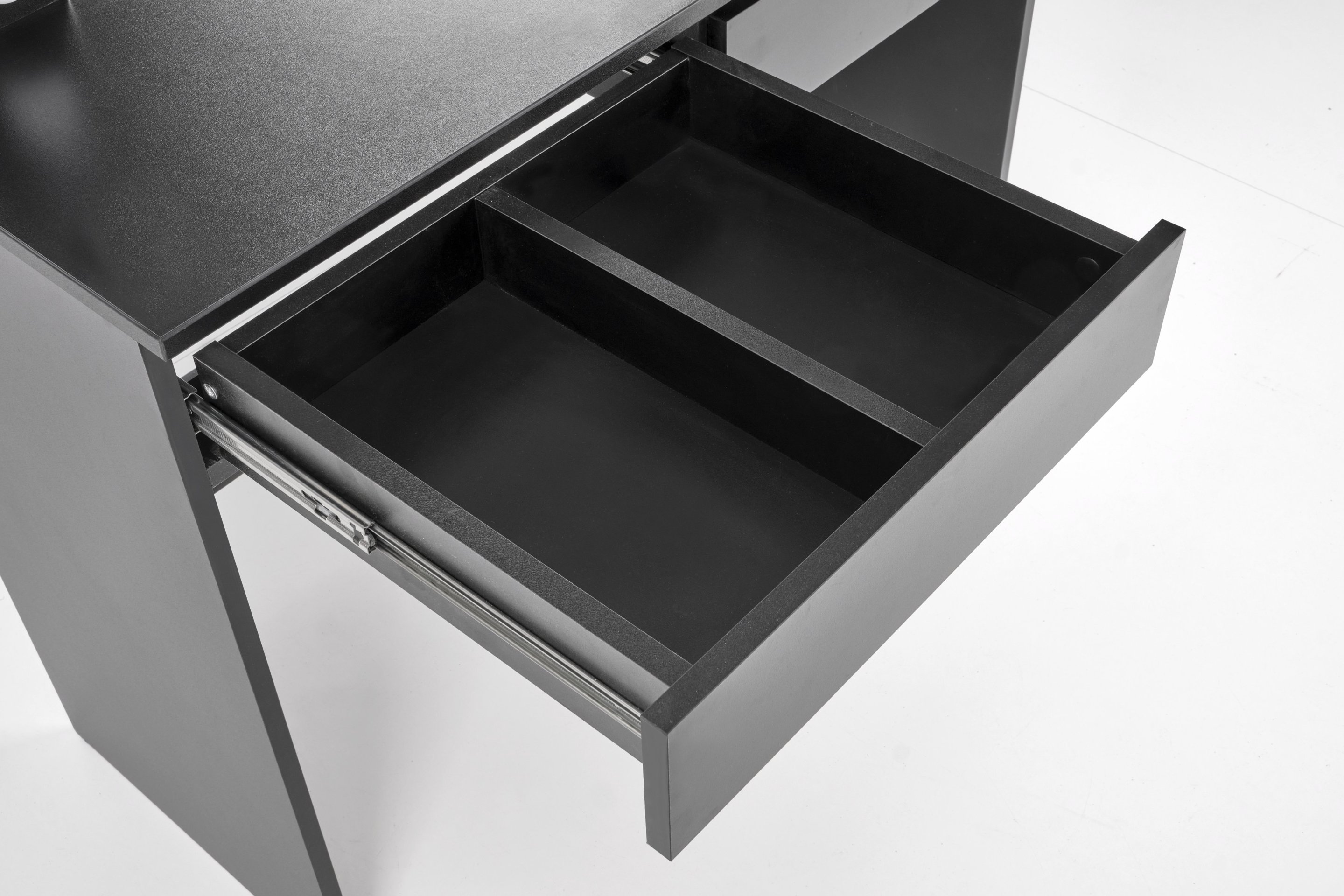 Stol je izrađen od kvalitetne ploče namještaja, presvučene dekorativnom folijom koja osigurava glatku površinu, otpornost na ogrebotine i jednostavno održavanje. Površina u crnom tonu dodaje dašak luksuza i profinjenosti, a istovremeno djeluje neutralno, pa se lako uklapa u različite kolorističke sheme prostora. Rubovi i spojevi su precizno obrađeni, što pridonosi stabilnosti i dugom vijeku trajanja proizvoda.