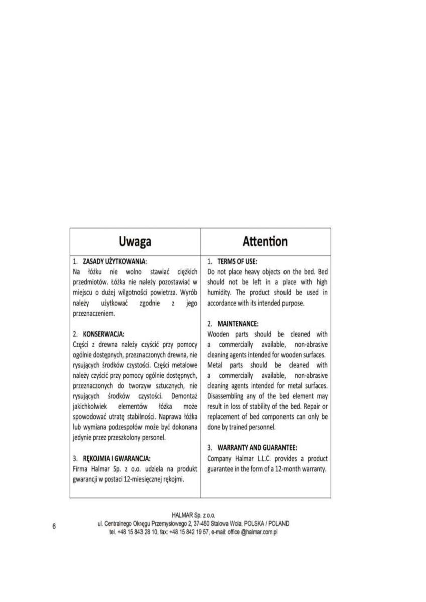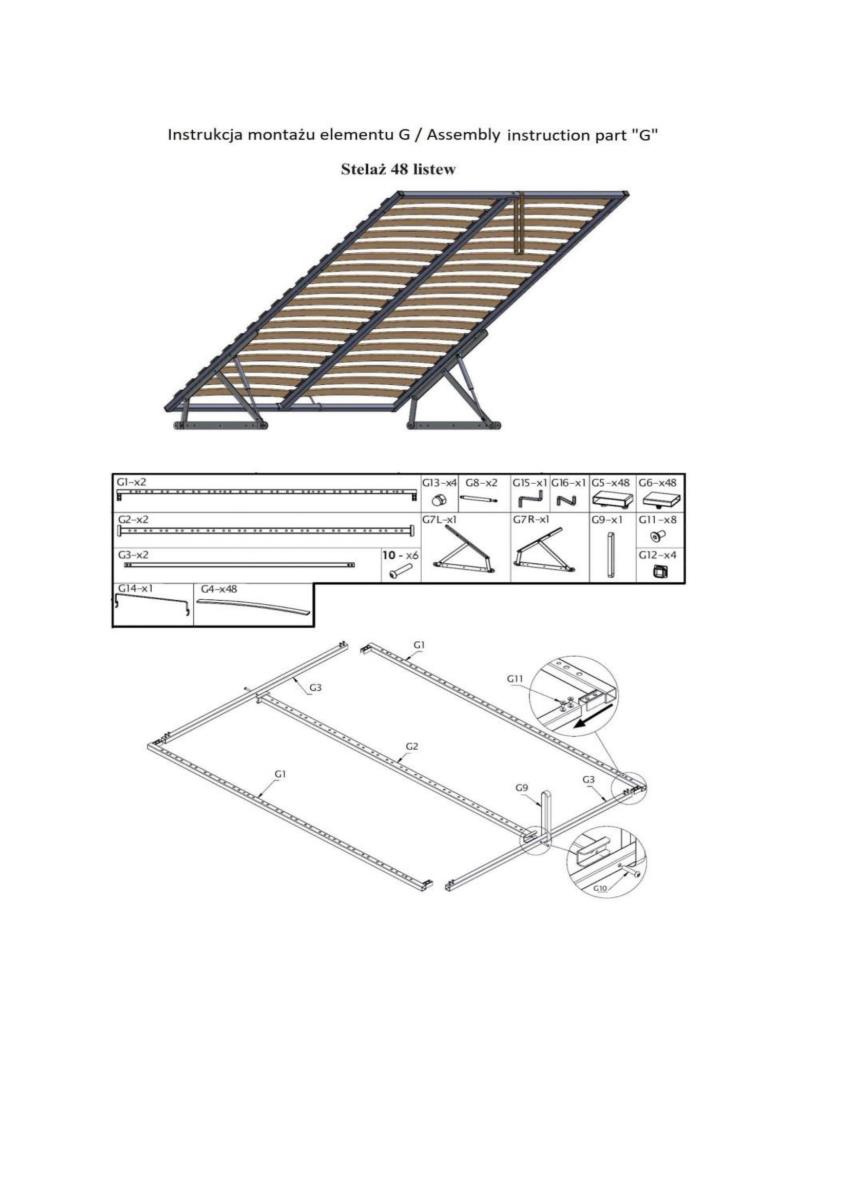 Krevet uključuje kvalitetno letvičasto dno s razmakom letvica 2,5 cm. Takav dizajn omogućuje dobro prozračivanje madraca i podržava njegovo ravnomjerno opterećenje, što pridonosi duljem vijeku trajanja. Letvičasto dno prikladno je za sve vrste madraca, pa možete birati između različitih modela prema svojim željama za udobnošću i potporom. Okvir kreveta isporučuje se bez madraca, ali se izvrsno slaže s modelima madraca veličine 160x200 cm, kao što su na primjer Polaris 160 ili Syriusz 160.
