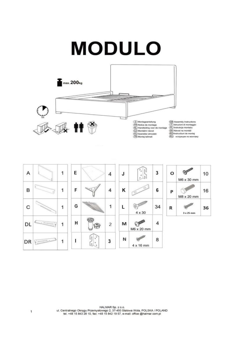 Okvir kreveta Modulo u boji bordo (Monolith 59) moderan je komad namještaja koji spaja funkcionalnost, estetiku i udobnost u jednom proizvodu. Izrađen je u tvornici Halmar u Poljskoj, poznatom proizvođaču kvalitetnog namještaja za suvremene domove. Vanjski okvir mjeri 175x208x44 cm, što odgovara ležištu dimenzije 160x200 cm. Krevet je savršen izbor za sve koji cijene elegantan izgled i praktična rješenja za pohranu.