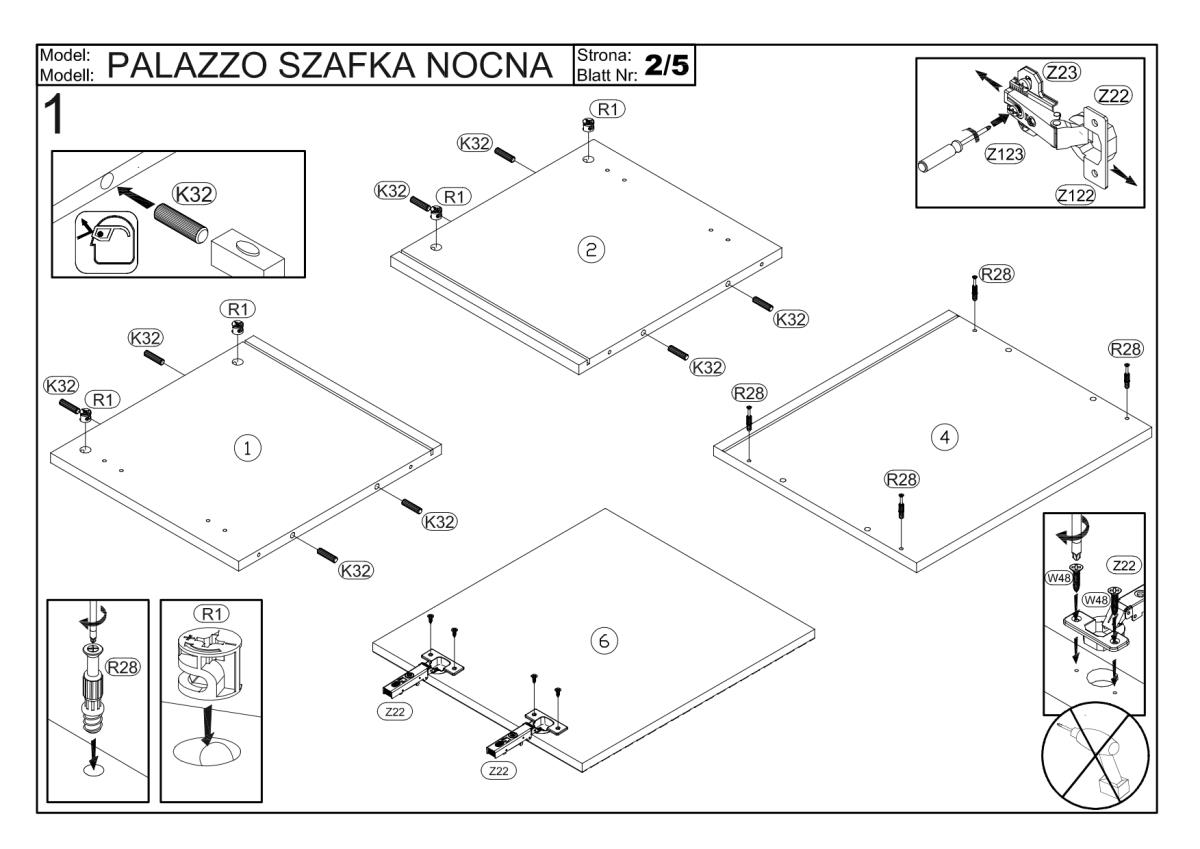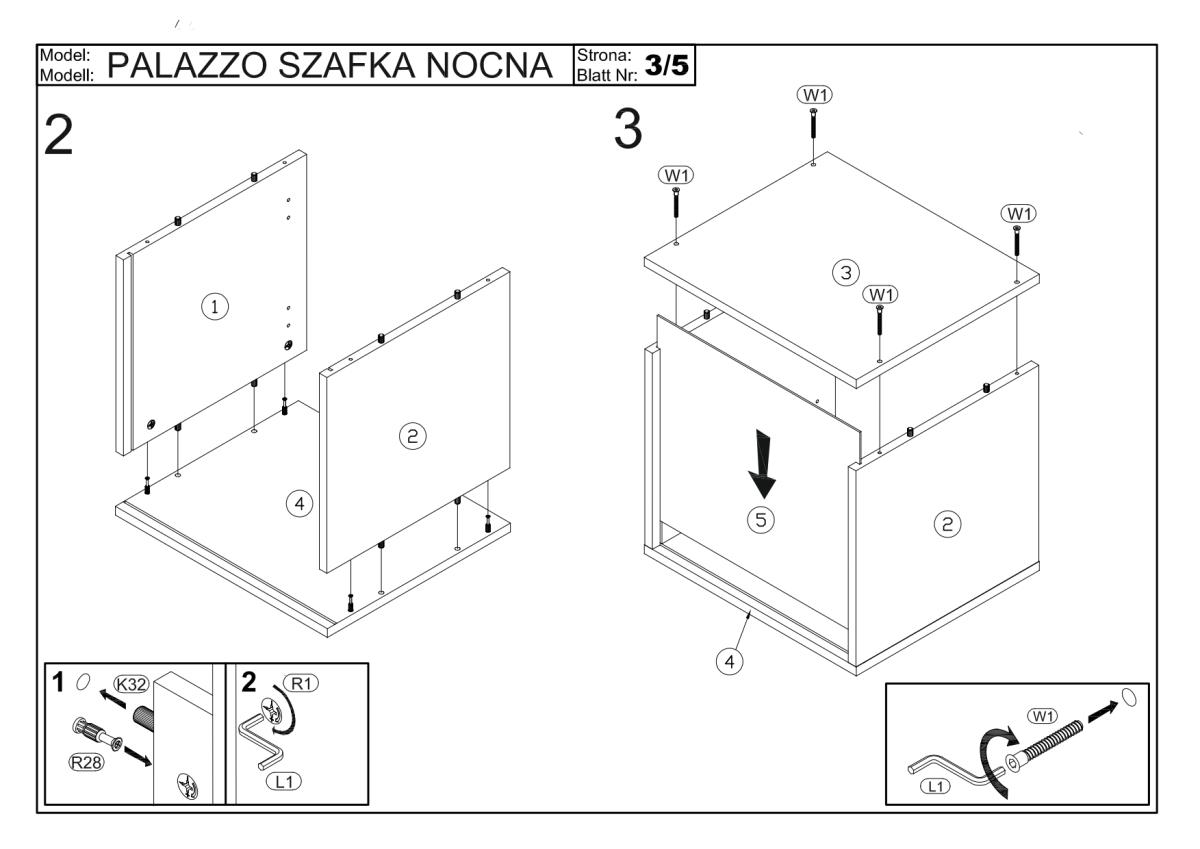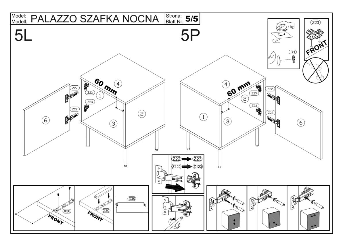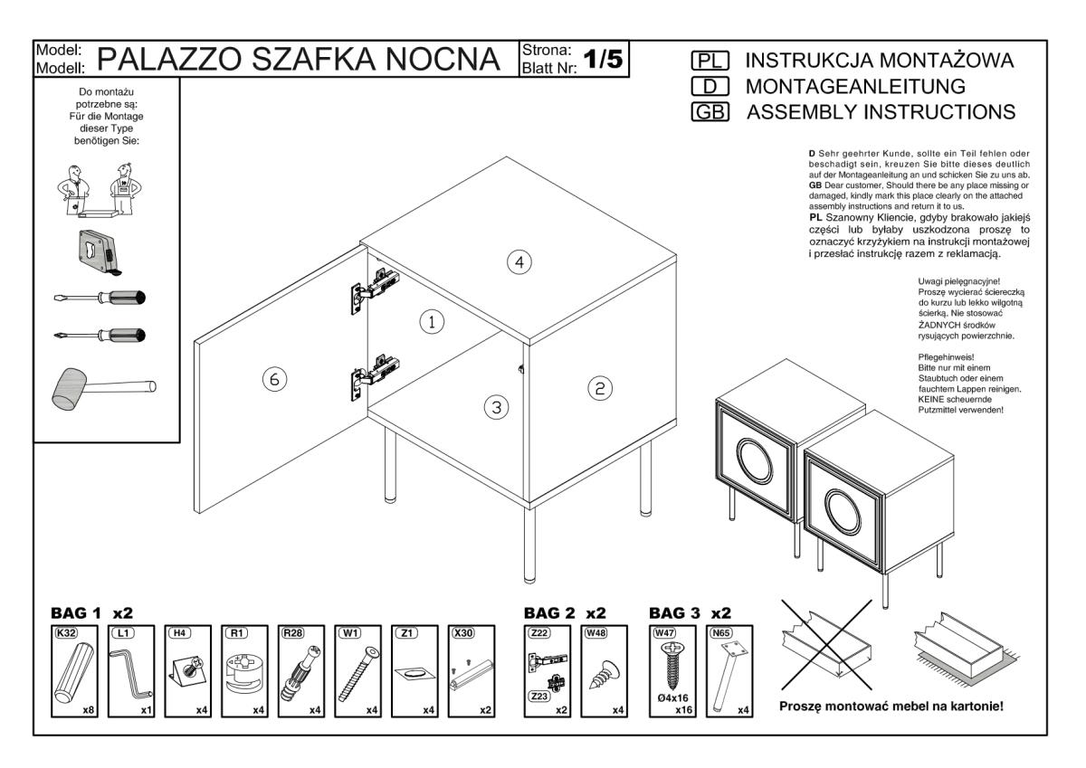 U kompletu se nalaze dva noćna ormarića, što je idealno rješenje za postavljanje s obje strane kreveta. Svaki nudi praktičan prostor za pohranu knjiga, naočala, kozmetike ili drugih predmeta koje želite imati pri ruci. Kombinacija praktičnosti i estetske dovršenosti čini komplet Palazzo svestrano uporabljivim i u drugim prostorima – na primjer u predsoblju, dnevnoj sobi ili čak kao dodatna odlagalna površina u radnom kutku.