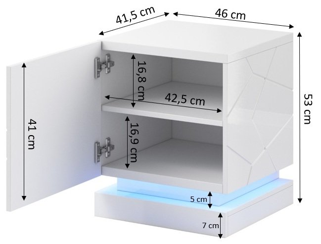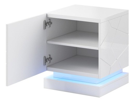 Komplet noćnih ormarića Qiu – Halmar u bijelom sjajnom izvedenju spaja estetsku profinjenost, funkcionalnost i kvalitetnu izradu. MDF ploče u visokom sjaju osiguravaju izdržljivost i moderan izgled, dok mogućnost dodatne rasvjete omogućuje stvaranje ugodne atmosfere u spavaćoj sobi. Dva komada u kompletu predstavljaju savršeno rješenje za harmonično i elegantno uređenje uz krevet. Ako tražite namještaj koji spaja jednostavnost, sjaj i praktičnost, komplet Qiu pravi je izbor za vaš dom.
