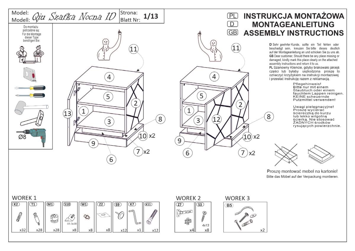 Komplet noćnih ormarića Qiu – Halmar spaja elegantan izgled, praktičnost i kvalitetnu izradu. Svojom bijelom sjajnom površinom i minimalističkim dizajnom, ova dva ormarića savršen su izbor za suvremene spavaće sobe, gdje prevladavaju čiste linije i svjetlost. Izrađeni su od MDF ploča foliranih u visokom sjaju, što osigurava glatku površinu, jednostavno čišćenje i dug vijek trajanja. U kompletu se nalaze dva ista noćna ormarića, što omogućuje potpunu simetriju uz krevet.