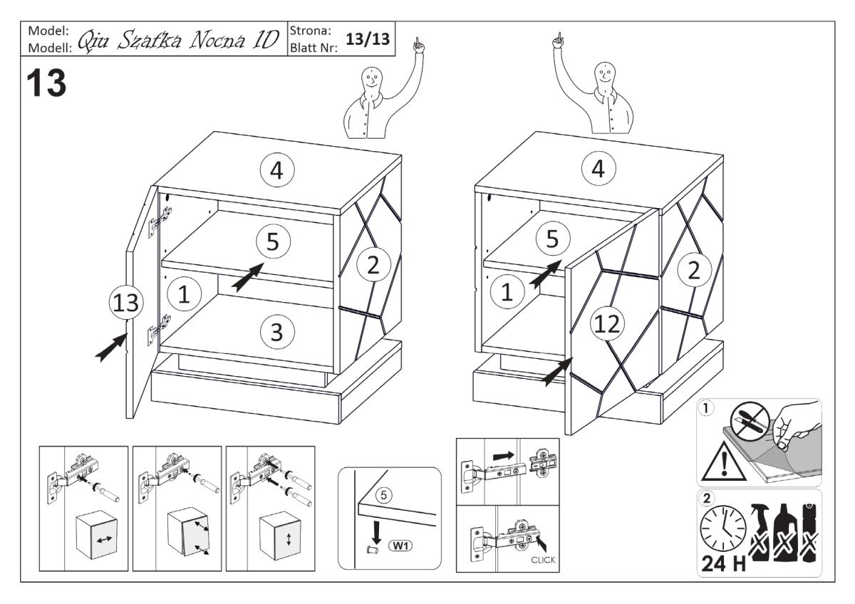 Komplet Qiu savršeno se uklapa s ostalim elementima iz istoimene kolekcije, što omogućuje potpunu usklađenost cijelog prostora. Bijela sjajna površina lako se kombinira s različitim paletama boja i teksturama, od svijetlog drva do kontrastnih tamnih tonova. Zbog svog univerzalnog dizajna, ormarići se lijepo uklapaju i u moderne i u klasičnije spavaće sobe.