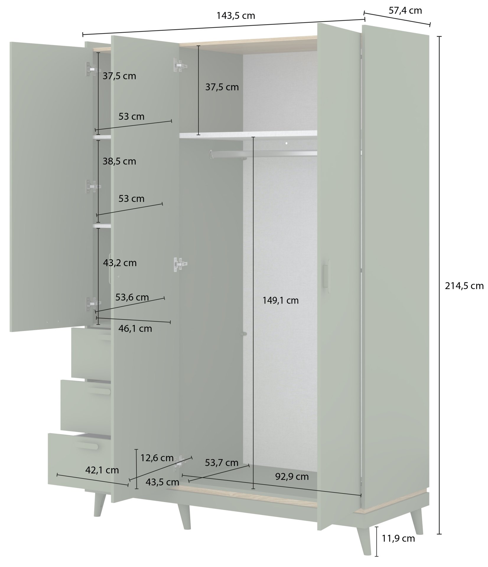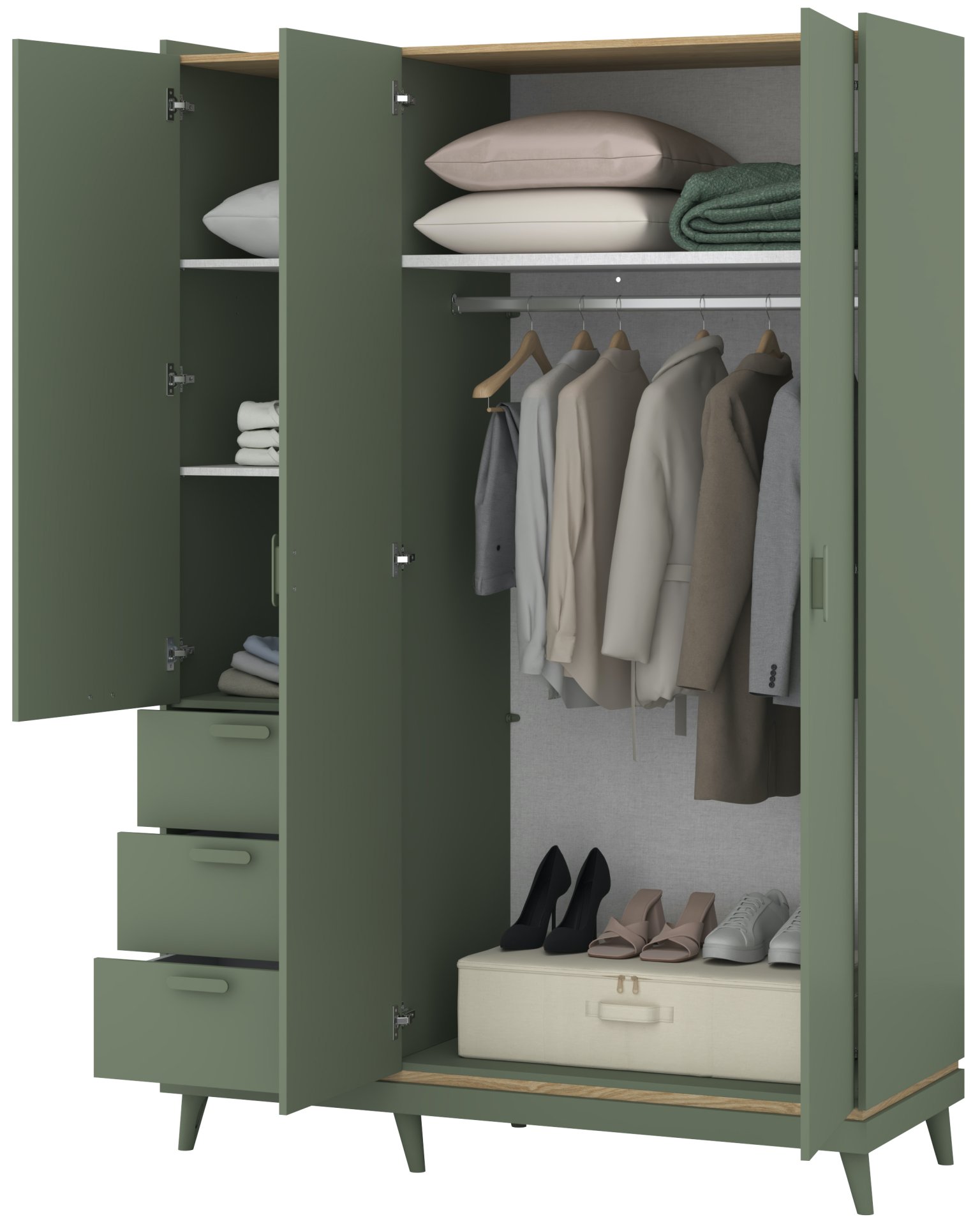 Neka vaša garderoba uvijek bude uredna, a odjeća nadohvat ruke u komadu namještaja koji spaja kvalitetu, funkcionalnost i moderan stil. Odaberite ormar u kombinaciji izblijedjelog zelenog nauljenog hrasta i izblijedjele zelene te svom domu dodajte dašak elegancije i praktičnosti.