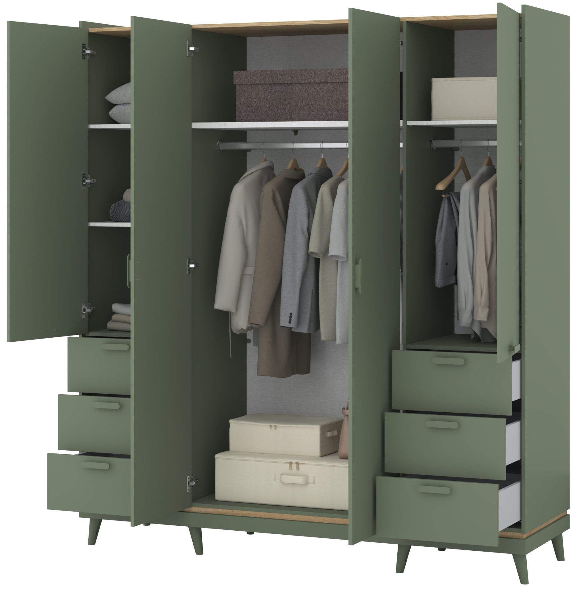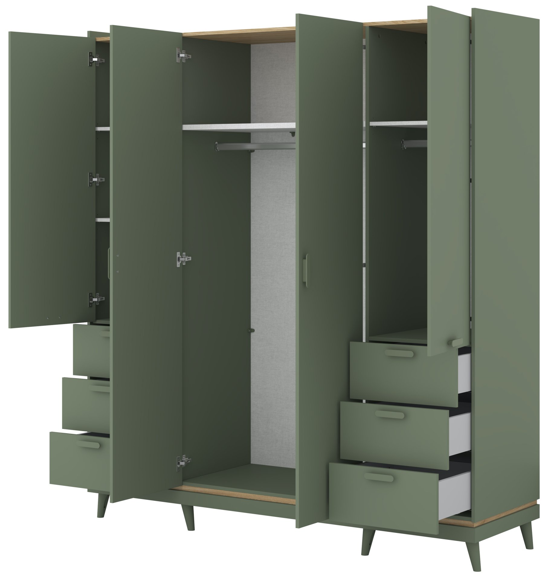 Neka vaša garderoba uvijek bude uredna, a odjeća nadohvat ruke – u komadu namještaja koji spaja kvalitetu, funkcionalnost i suvremeni stil. Odaberite ormar u kombinaciji izblijedjelog zelenog uljenog hrasta i izblijedjele zelene te svom domu dodajte dašak elegancije i praktičnosti.